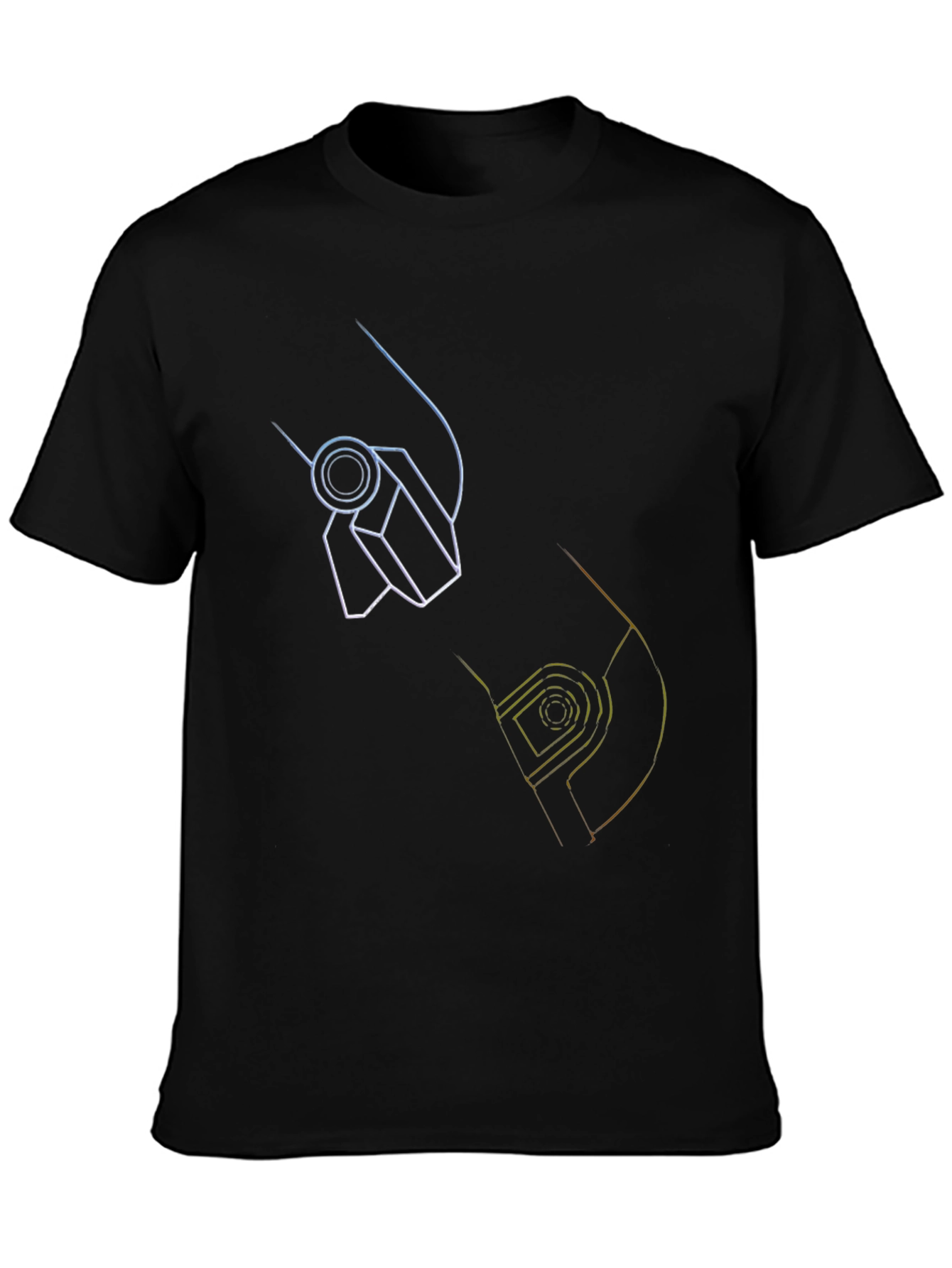 This black t-shirt features a unique abstract graphic print, perfect for adding a modern edge to your casual wardrobe. The design includes minimalist line work with geometric shapes, creating a contemporary and eye-catching look. Made from a comfortable and breathable fabric, this tee is ideal for everyday wear. Pair it with jeans or shorts for a relaxed yet stylish outfit. Great for casual outings, concerts, or just hanging out with friends, this graphic tee is a versatile addition to any fashion-forward man's closet. Make a statement without saying a word.