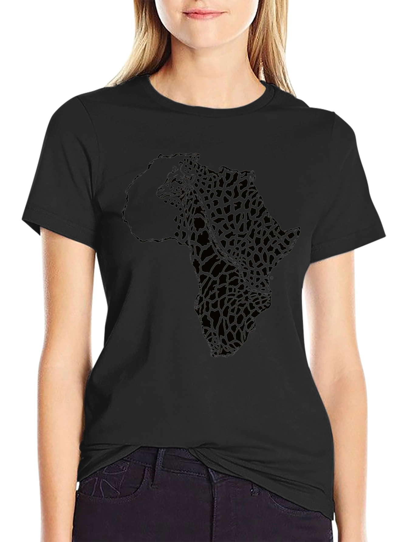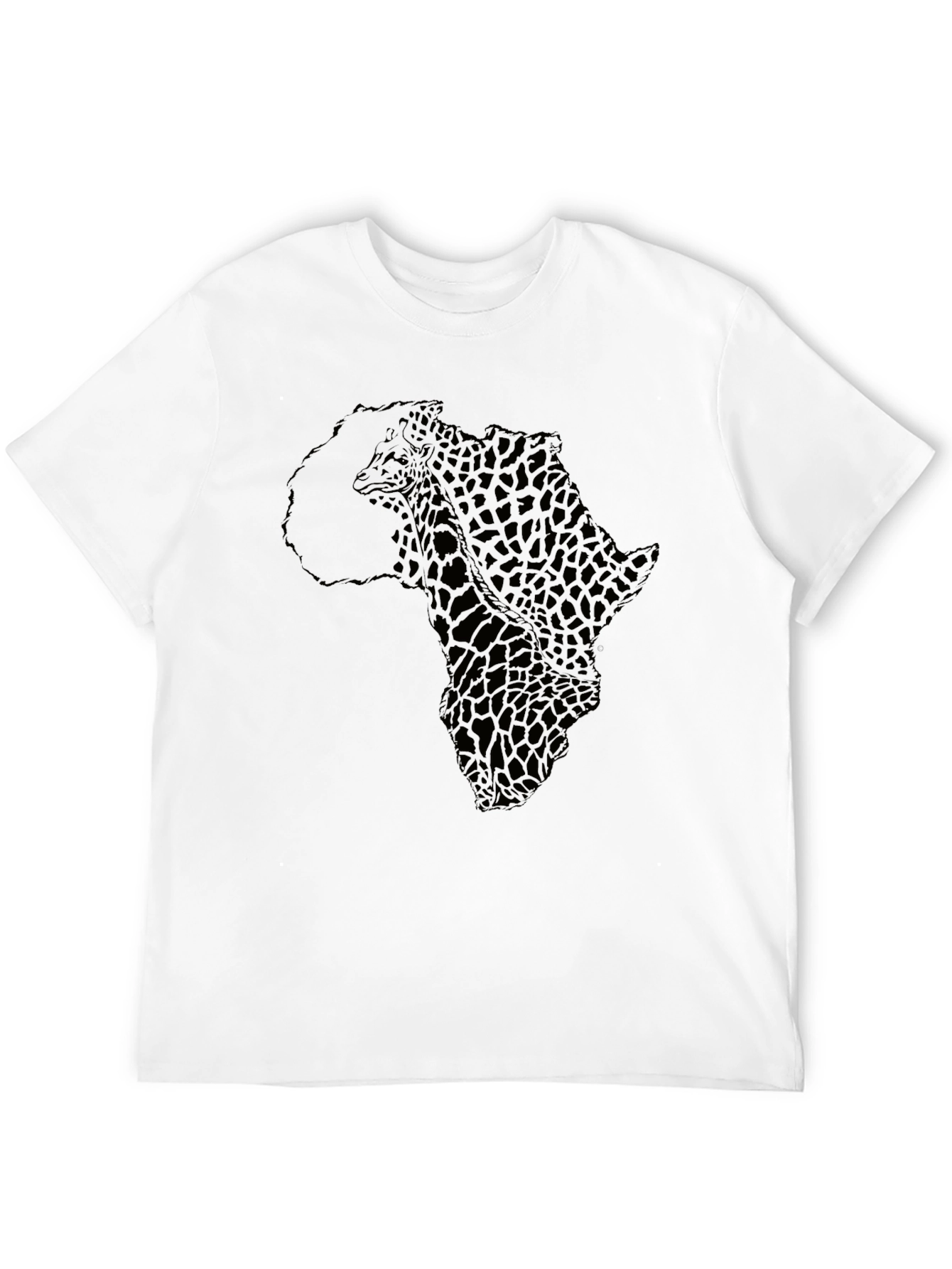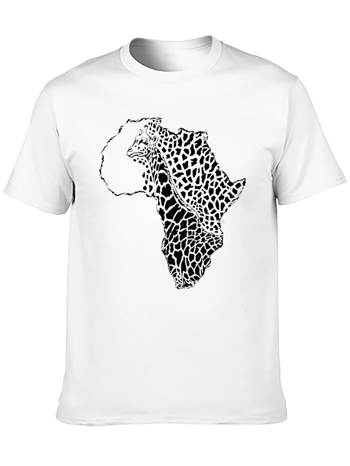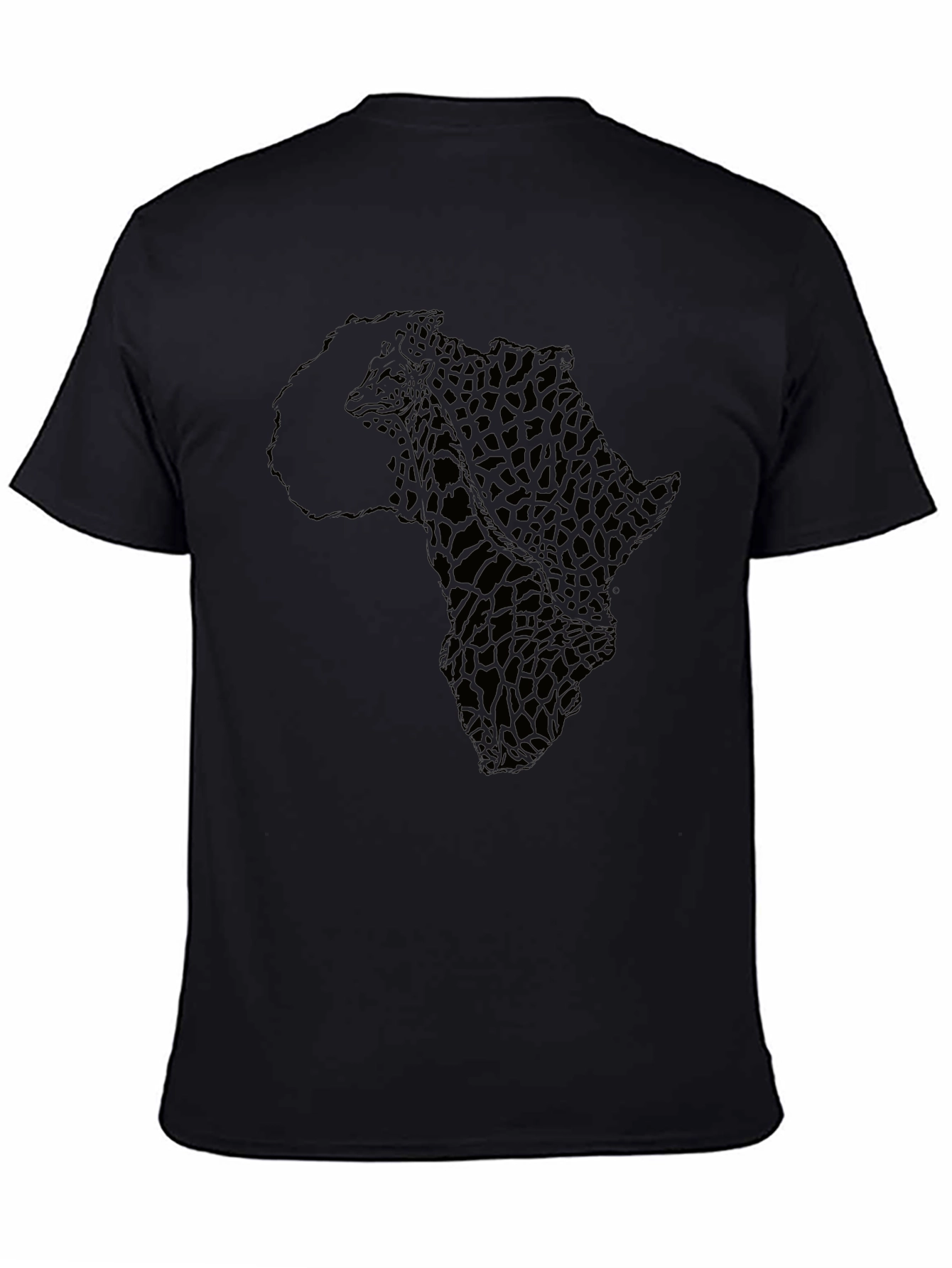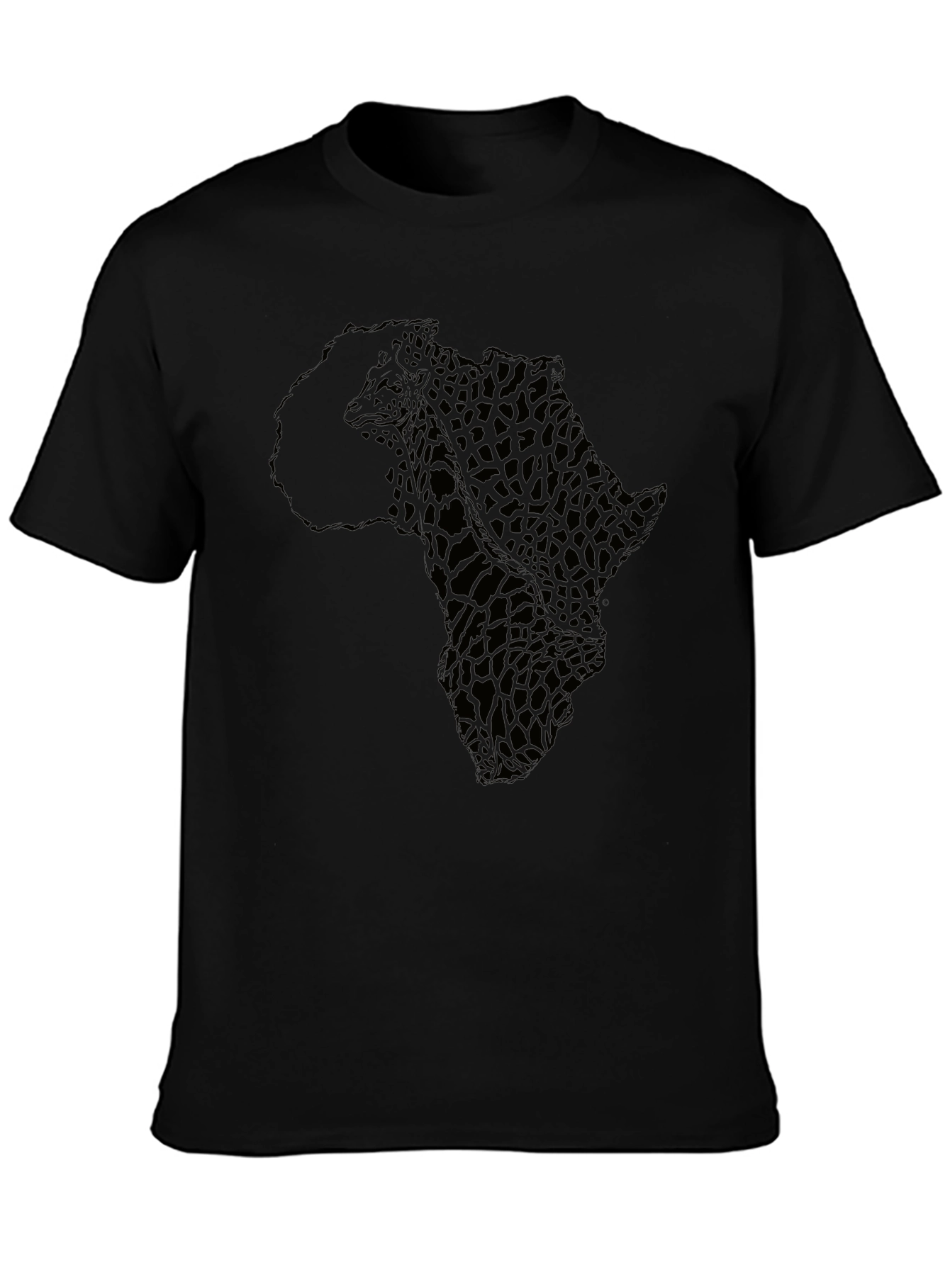Show off your love for Africa with this unique black t-shirt. The shirt features a striking print of the African continent filled with a giraffe pattern, adding a touch of wildlife charm to your wardrobe. Made from soft, breathable fabric, this tee offers all-day comfort and style. Perfect for casual outings, travel, or simply expressing your passion for wildlife, this t-shirt is a must-have for any nature enthusiast. Pair it with jeans or shorts for a relaxed yet fashionable look. Get yours today and celebrate the beauty of Africa!