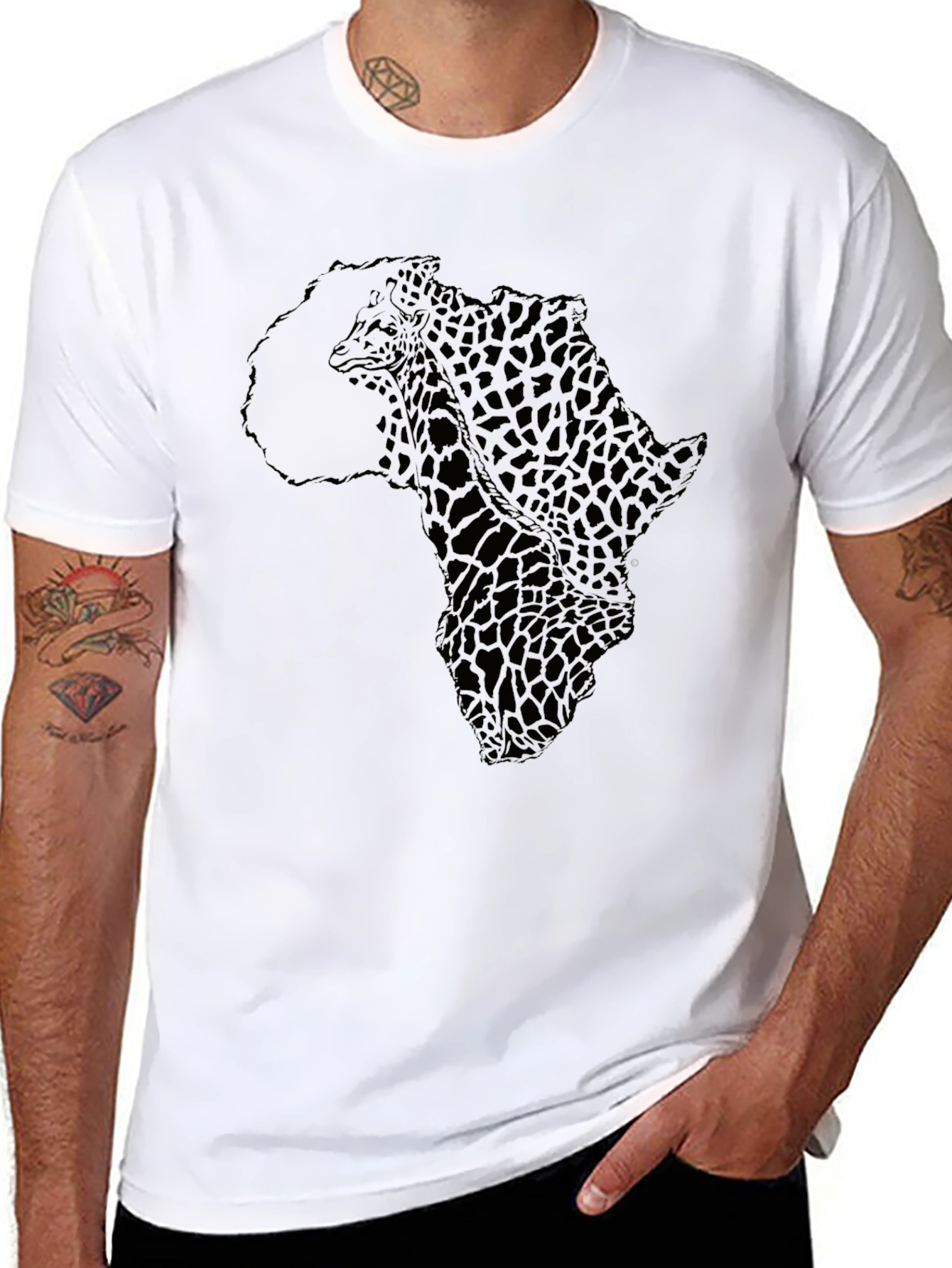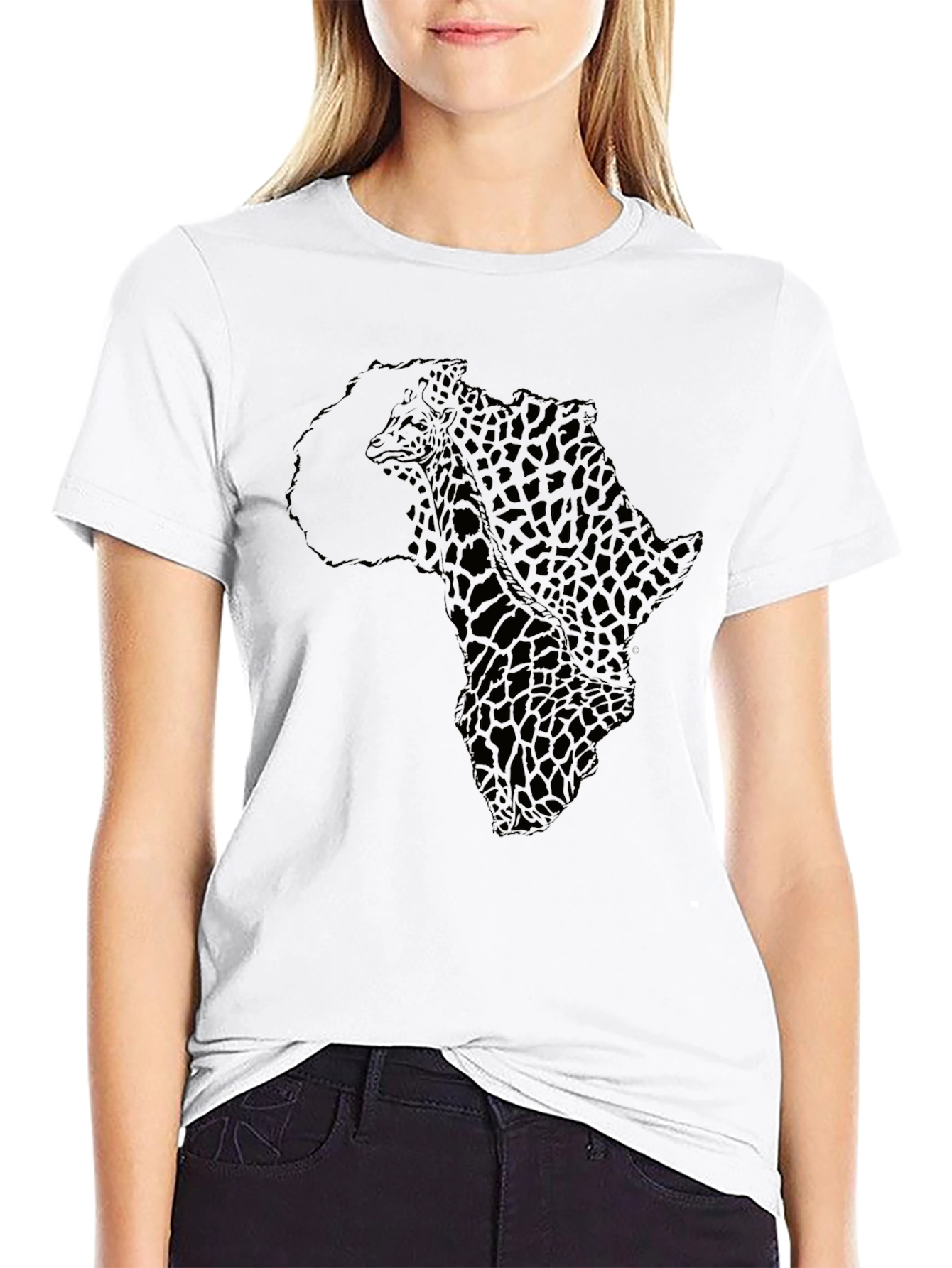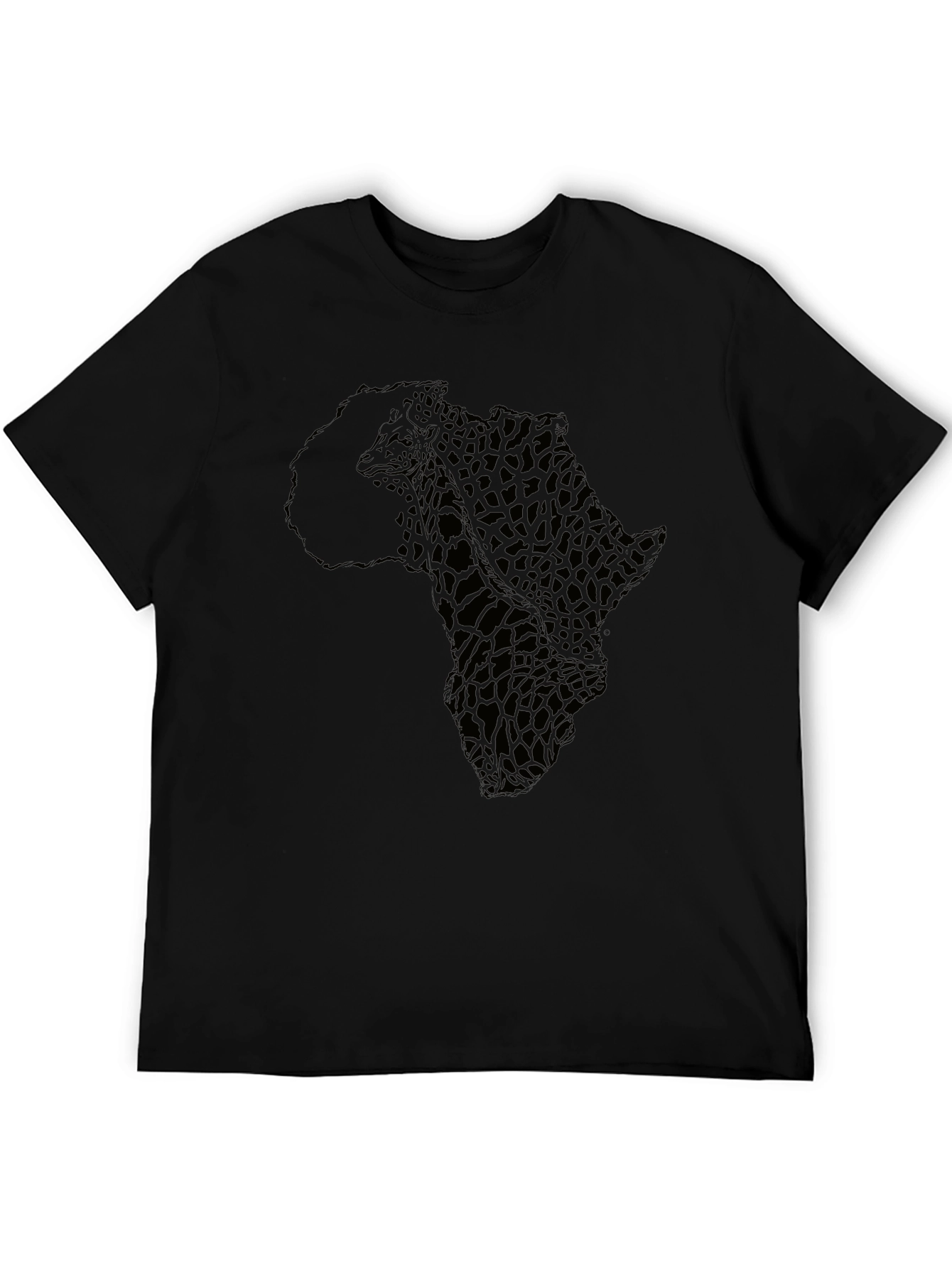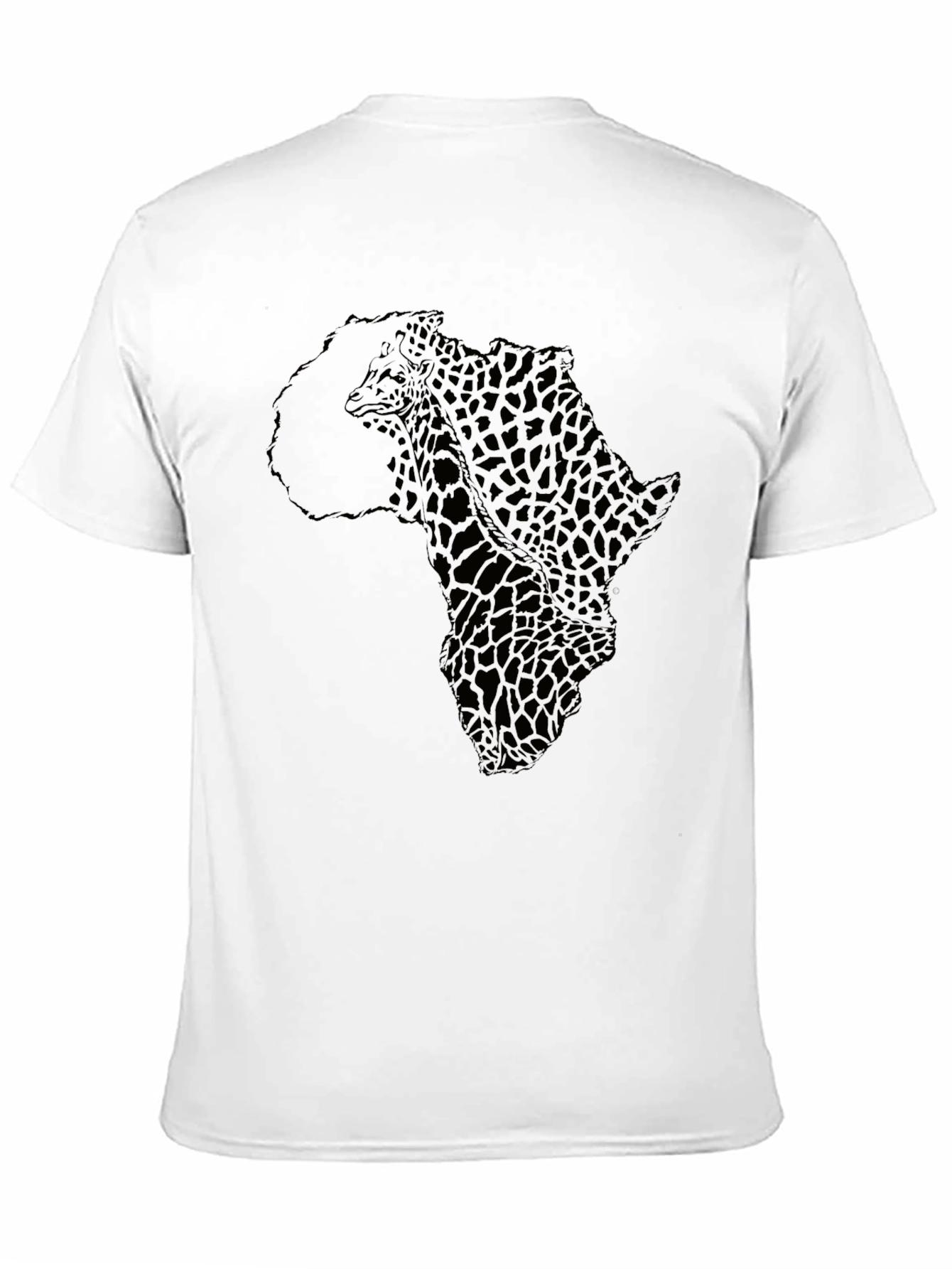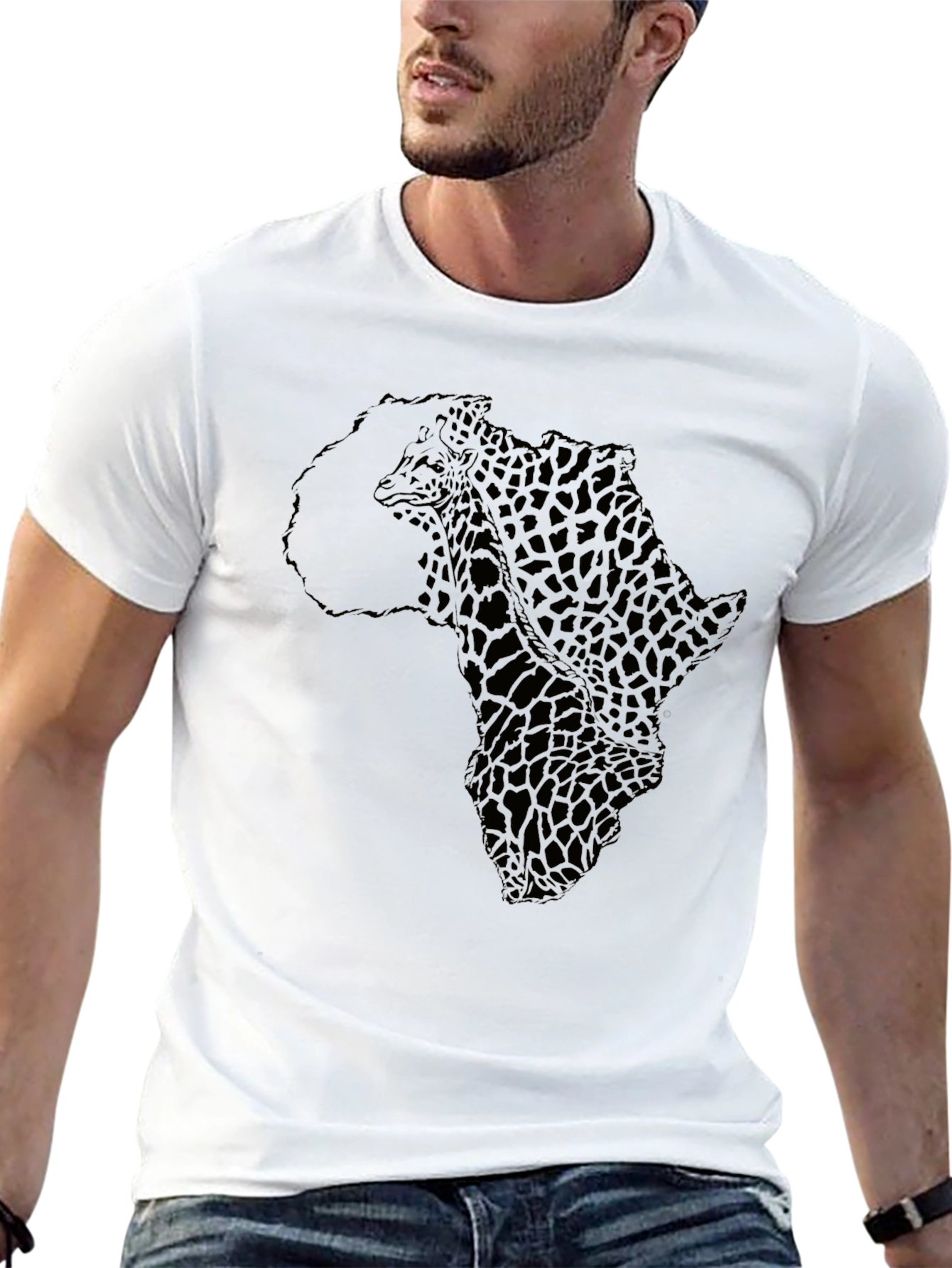 Show off your love for Africa with this unique black t-shirt. The shirt features a striking print of the African continent filled with a giraffe pattern, adding a touch of wildlife charm to your wardrobe. Made from soft, breathable fabric, this tee offers all-day comfort and style. Perfect for casual outings, travel, or simply expressing your passion for wildlife, this t-shirt is a must-have for any nature enthusiast. Pair it with jeans or shorts for a relaxed yet fashionable look. Get yours today and celebrate the beauty of Africa!