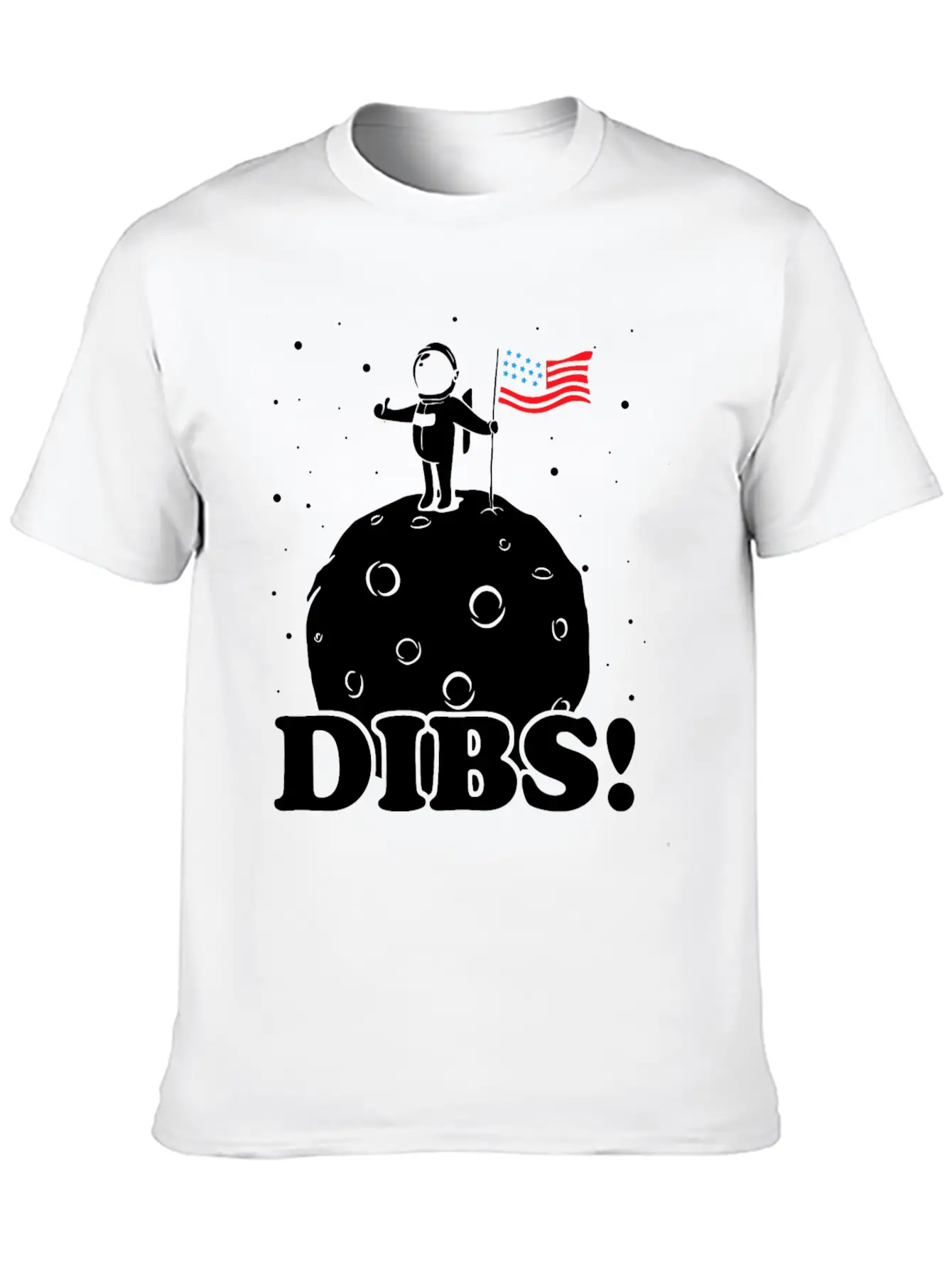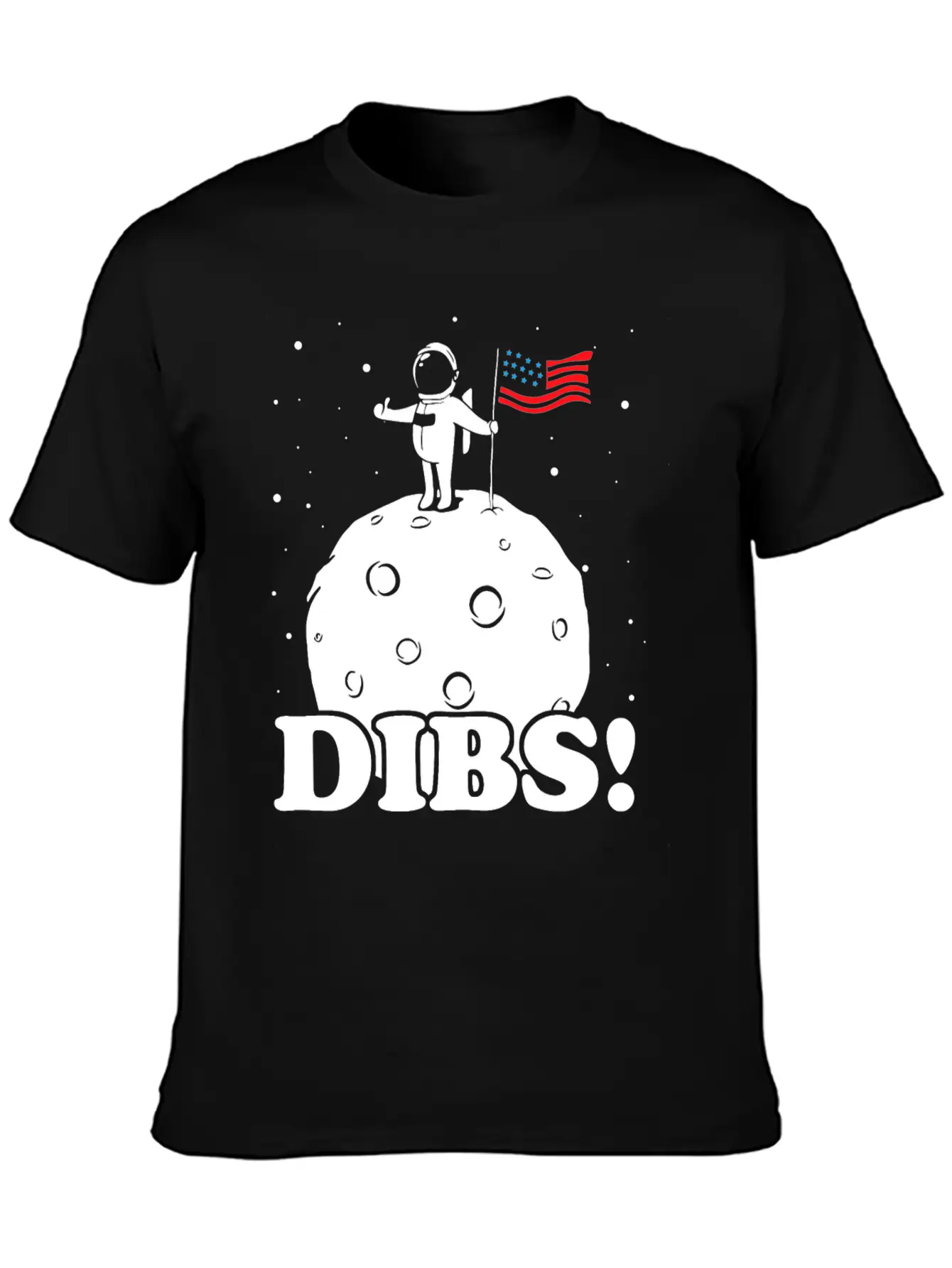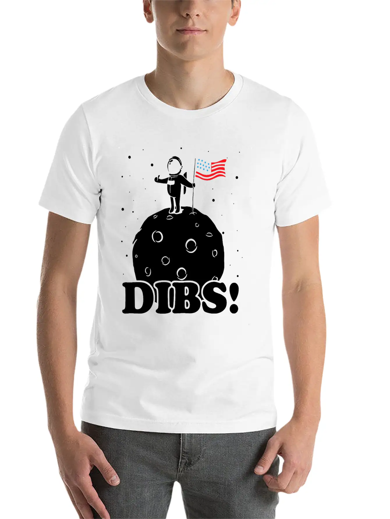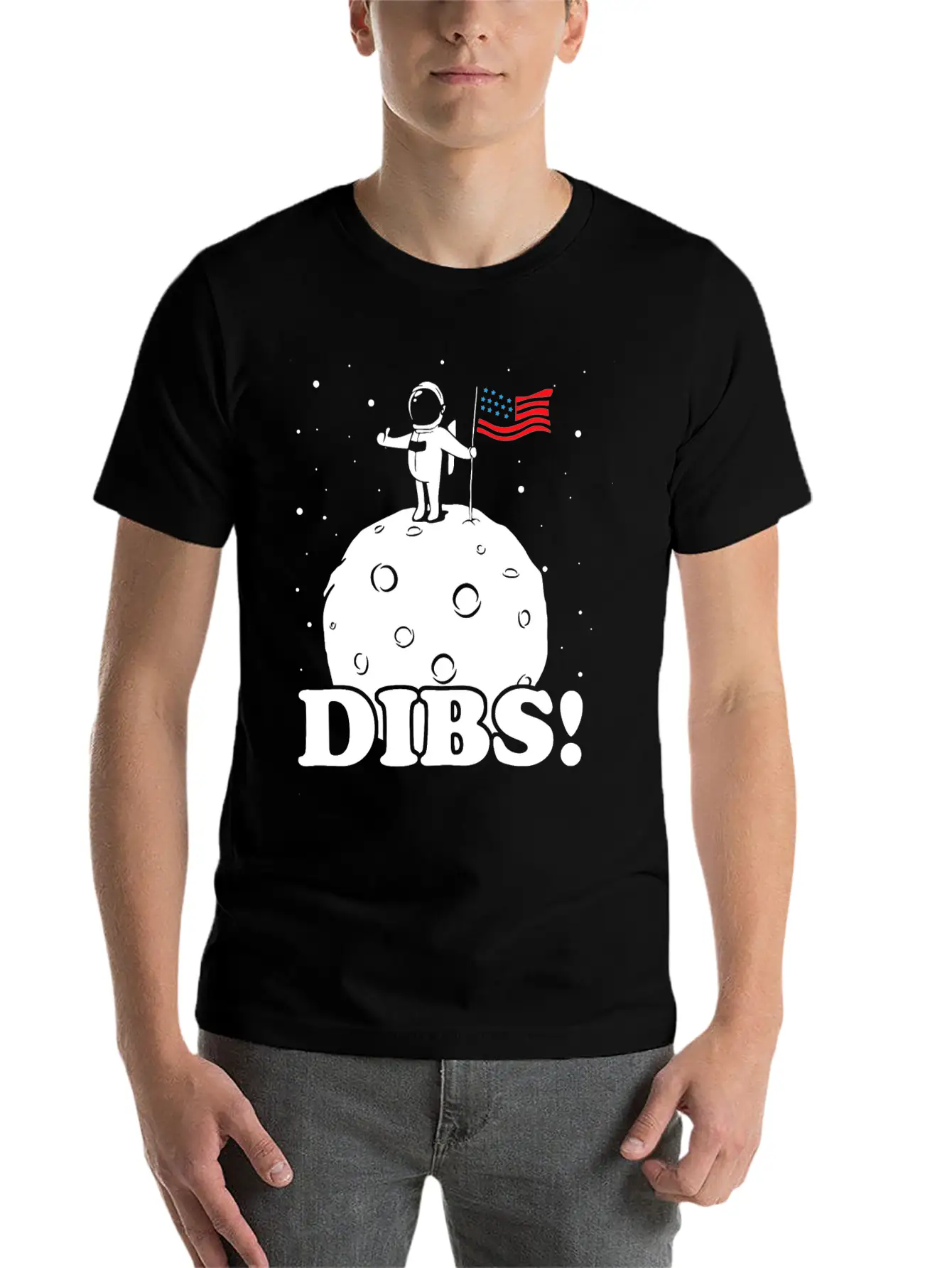 American Flag On Moon Unisex Casual T-Shirt – Clean Design For Daily Comfort