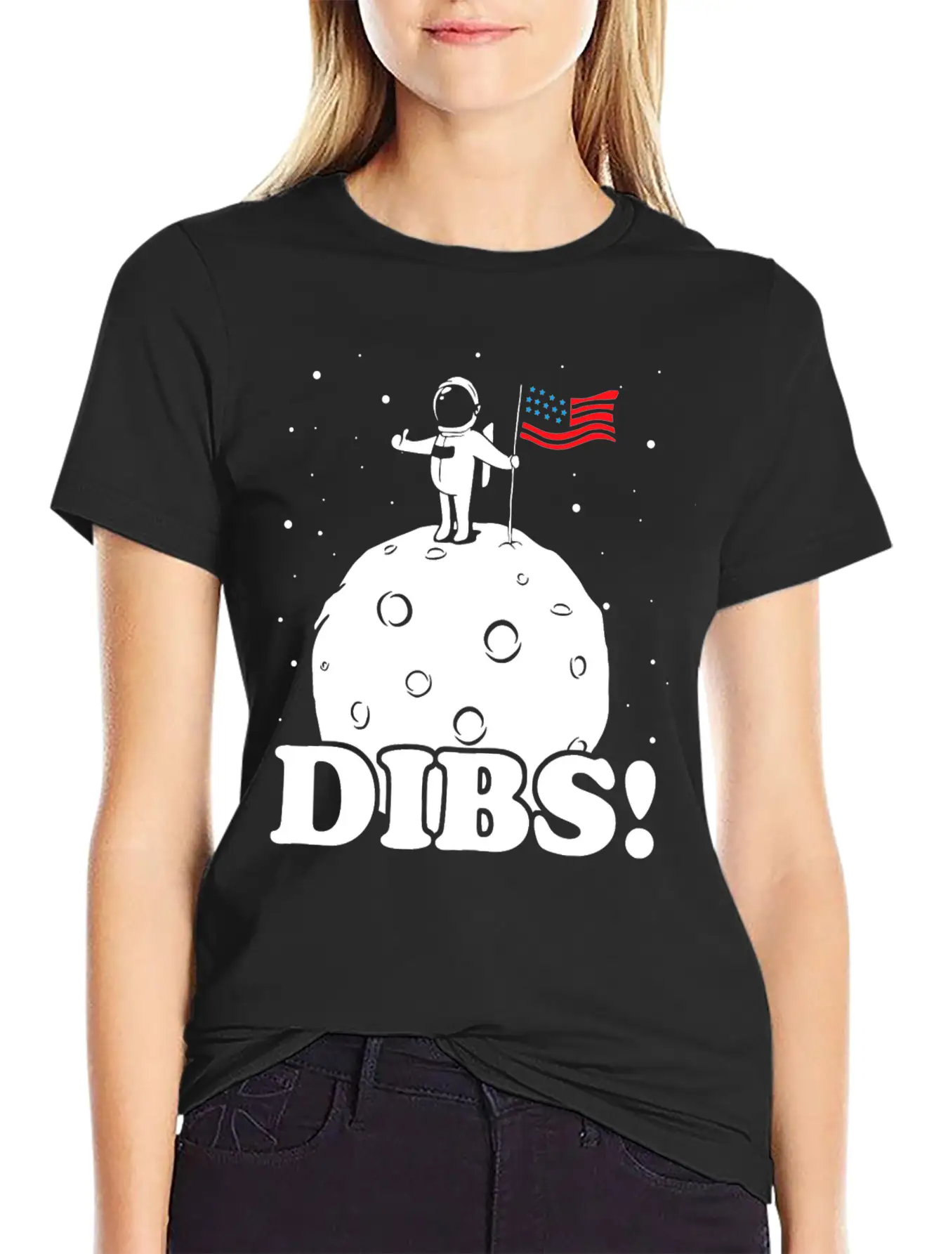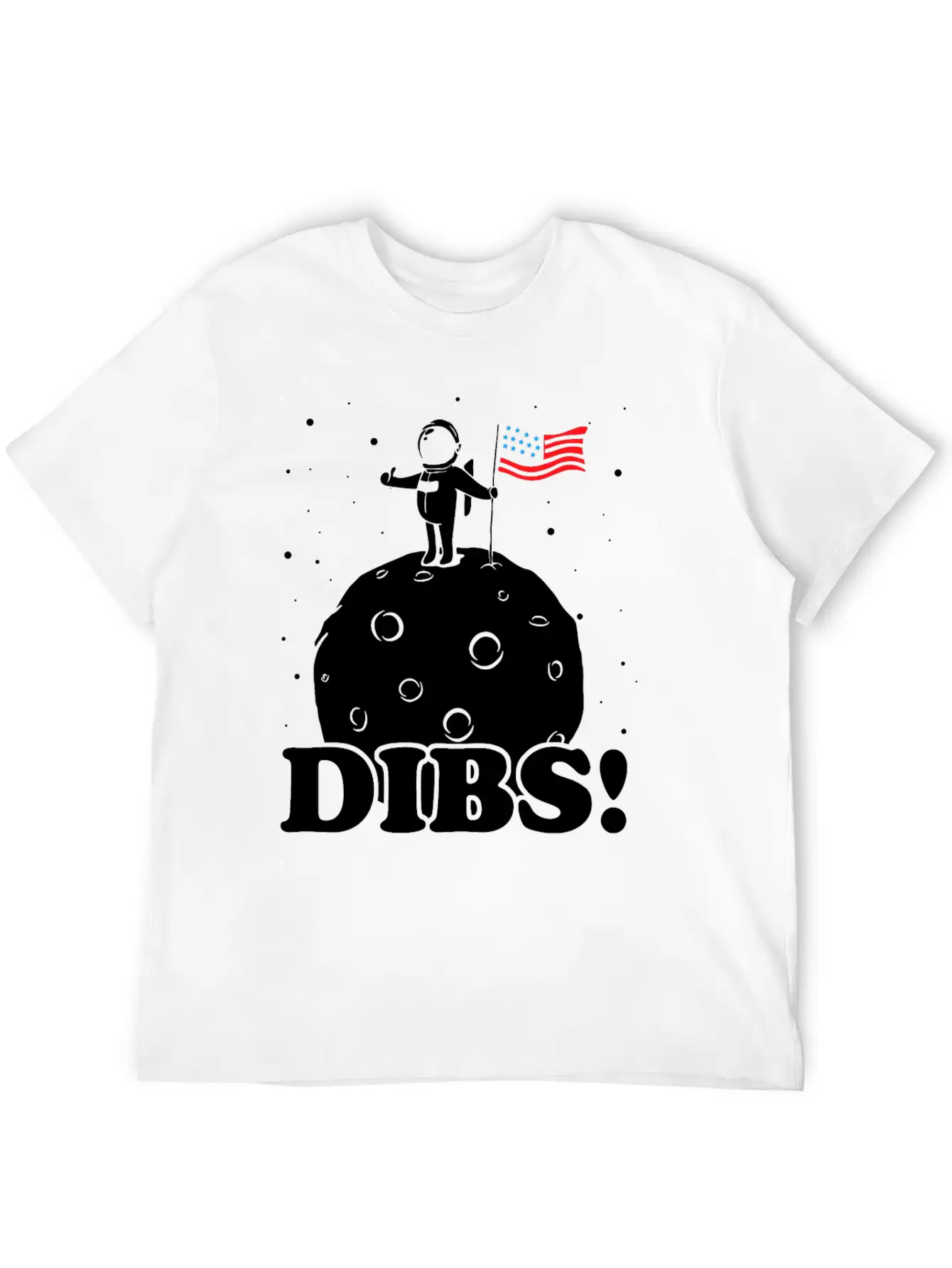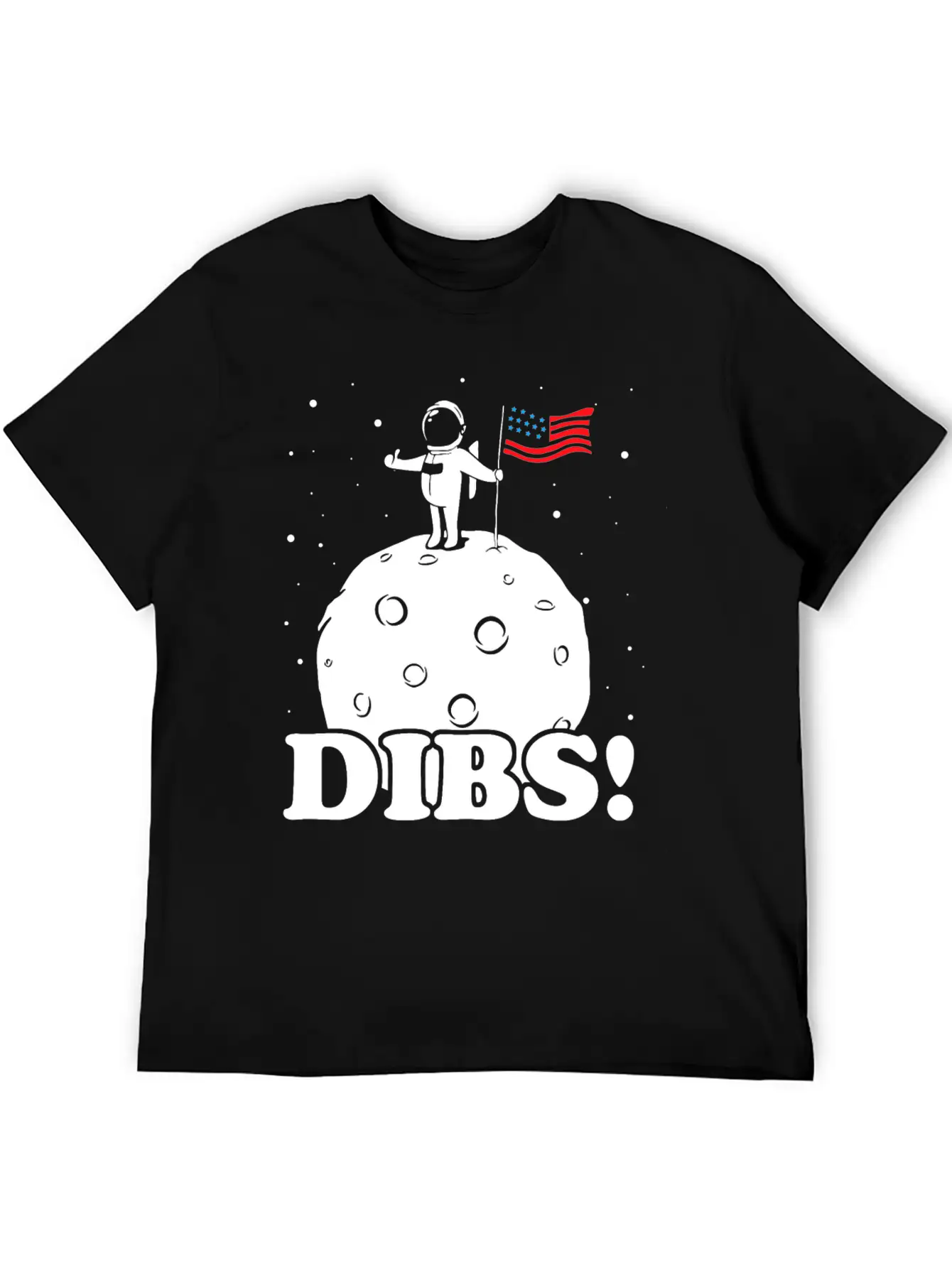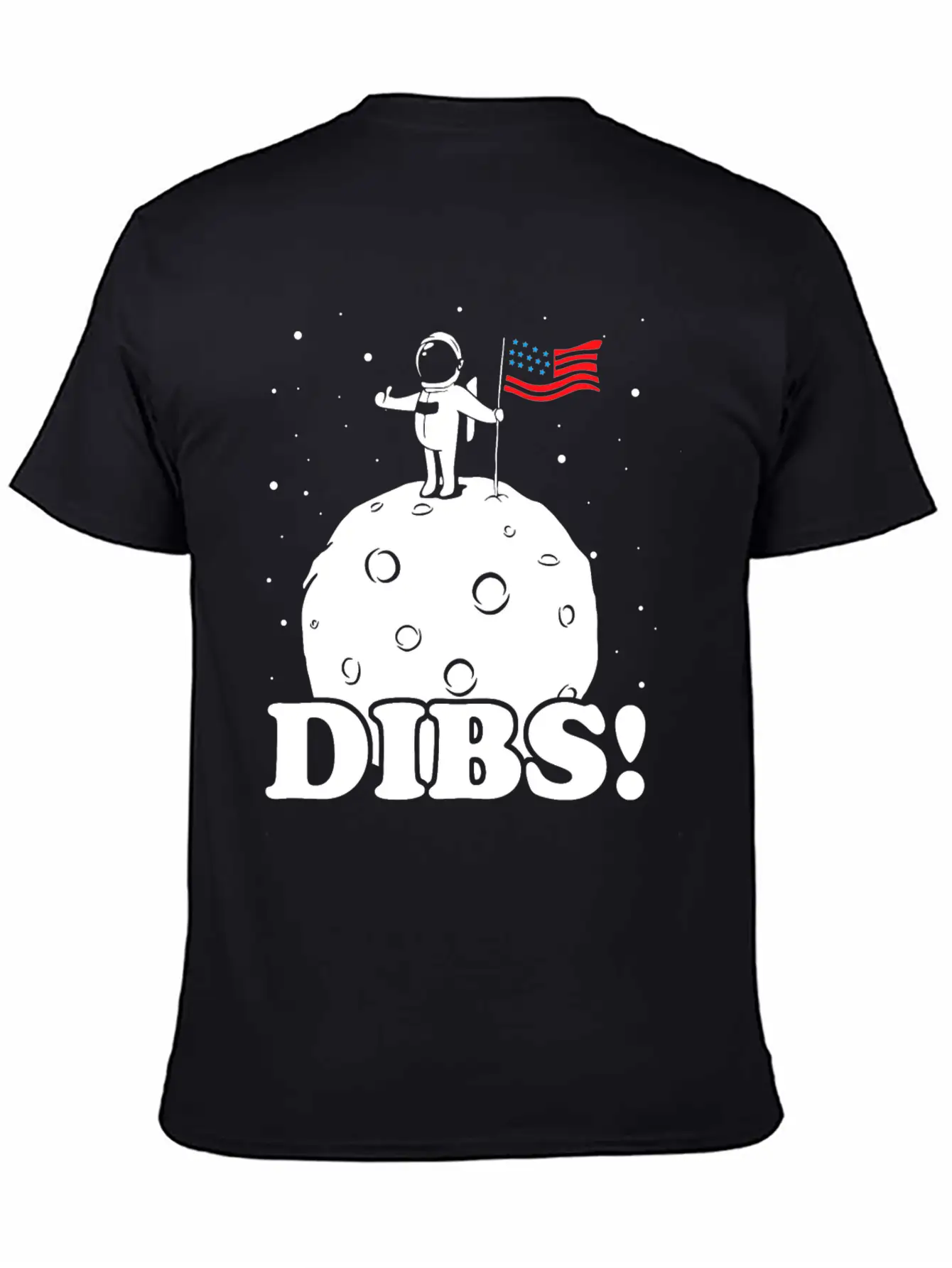 American Flag On Moon Unisex Casual T-Shirt – Clean Design For Daily Comfort