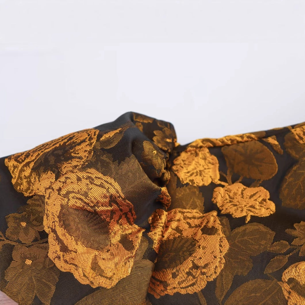 Flip collar bubble sleeve single breasted jacquard shirt top