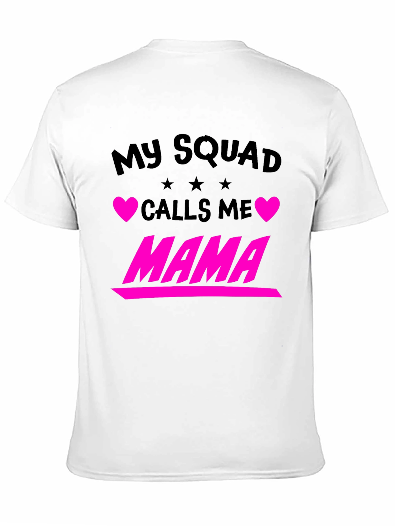 Show off your motherly pride with this stylish black graphic tee. The shirt features the playful phrase "My Squad Calls Me Mama" in bold black and pink lettering, complete with heart accents and star details. Made from a comfortable, breathable fabric, this tee is perfect for everyday wear. Whether you're running errands, hanging out with your squad, or just relaxing at home, this t-shirt lets everyone know you're the awesome mama of the group. A great gift for the matriarch in your life, this shirt combines comfort and personality in one fashionable package.