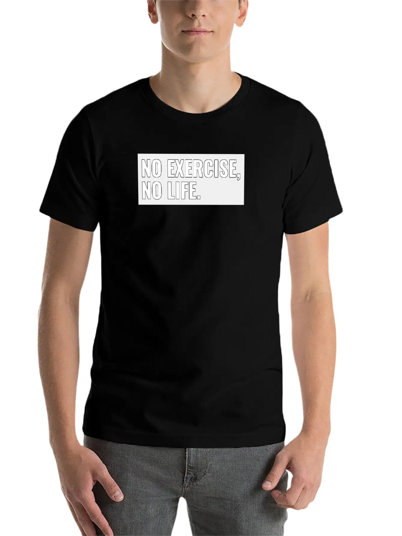 With a unique take on the No Exercise, No Life, this shirt is perfect for fans of subtle yet striking design. Cotton comfort guaranteed.