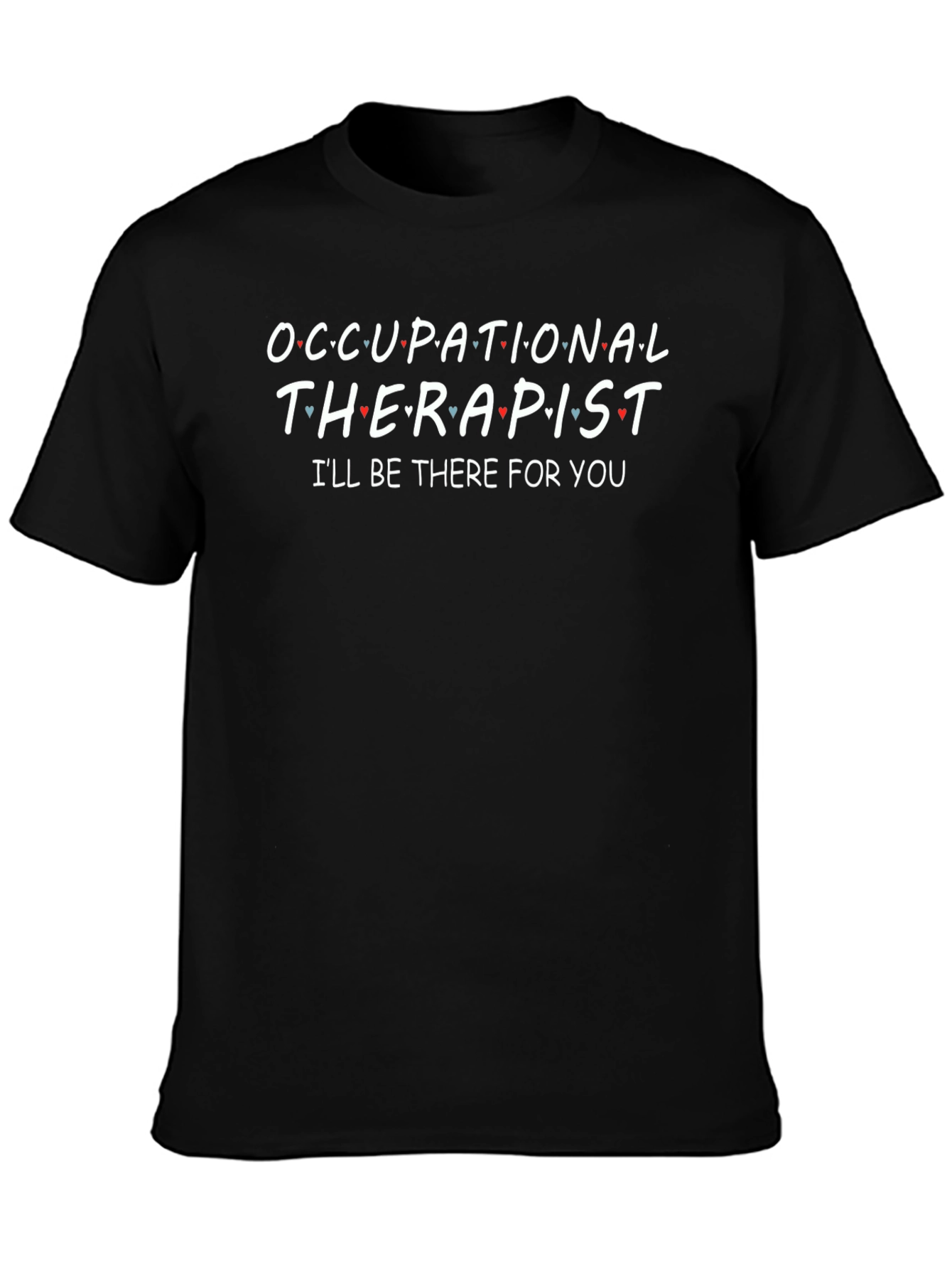 Show your support and appreciation with this Occupational Therapist T-Shirt. Inspired by the iconic TV show "Friends", this shirt features a playful design that incorporates the phrase "Occupational Therapist I'll be there for you". The shirt is made of a dark-colored material, likely cotton or a cotton blend. It appears soft and comfortable. It will be perfect for casual wear, work events, or as a gift for your favorite occupational therapist. Show off your unique style and dedication with this tee.
