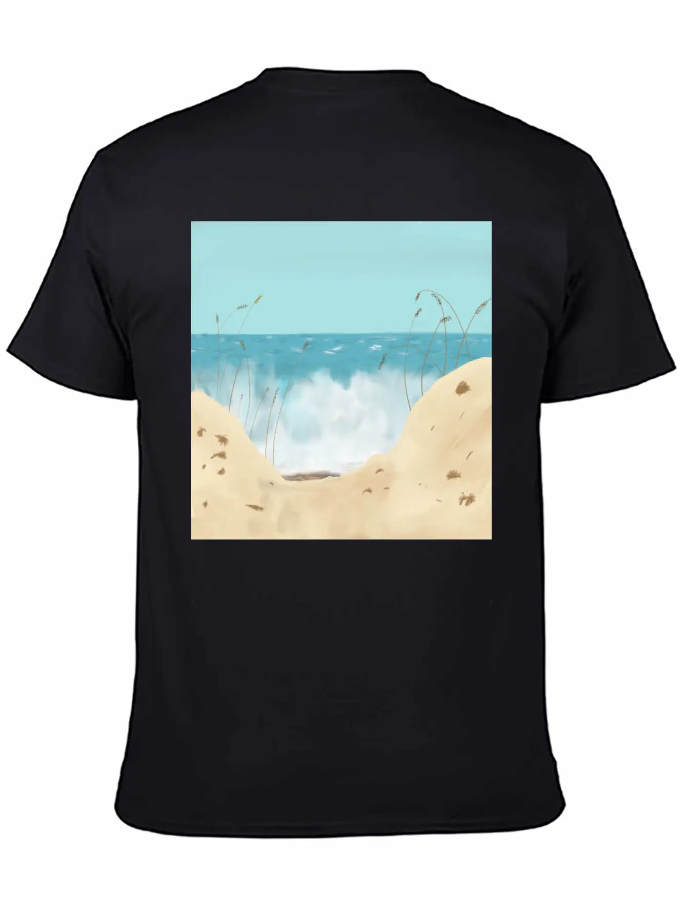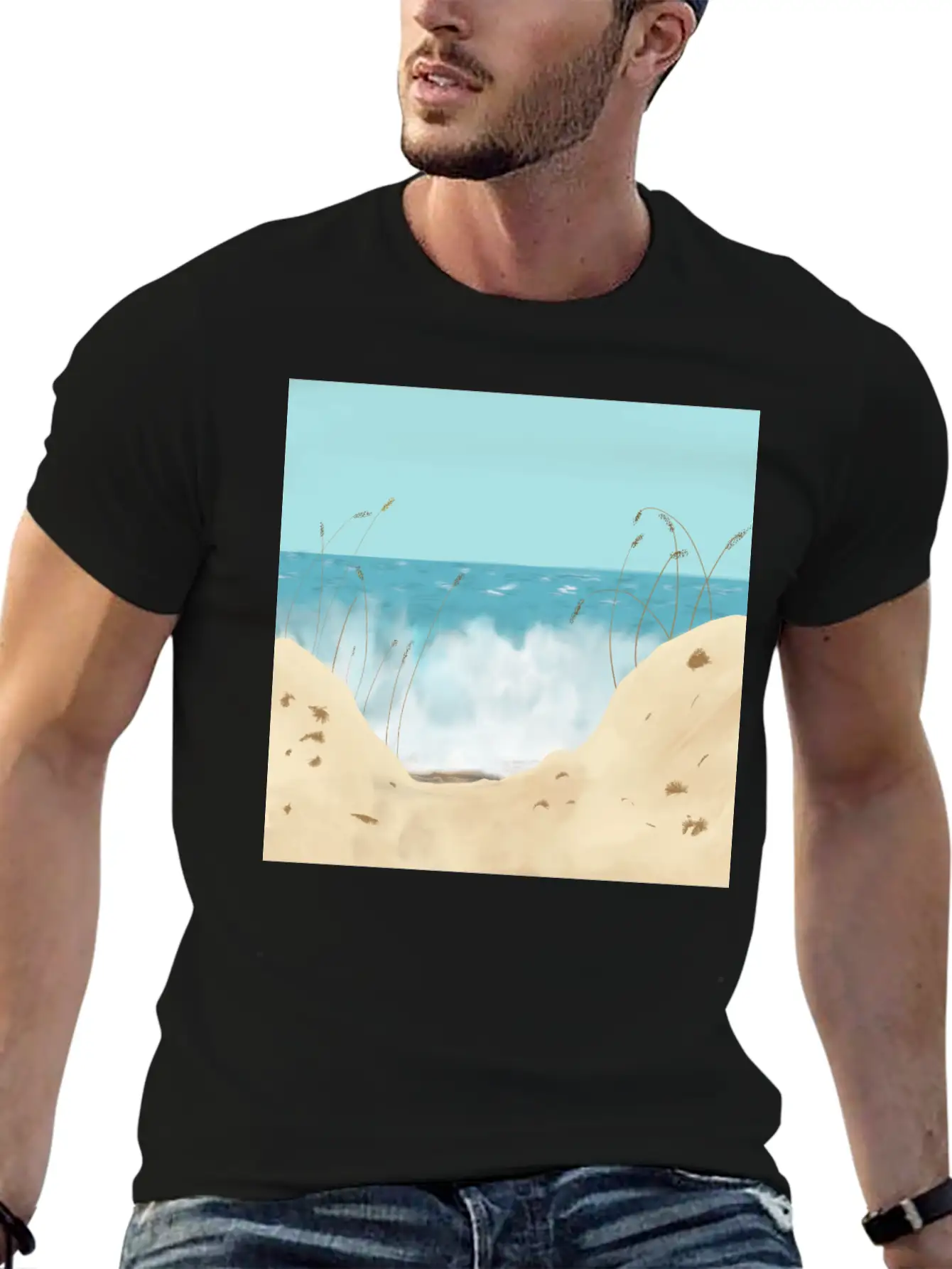 Ocean Waves Against The Shore And Sand Dunes Lightweight Cotton T-Shirt – Daily Comfort Graphic Shirt