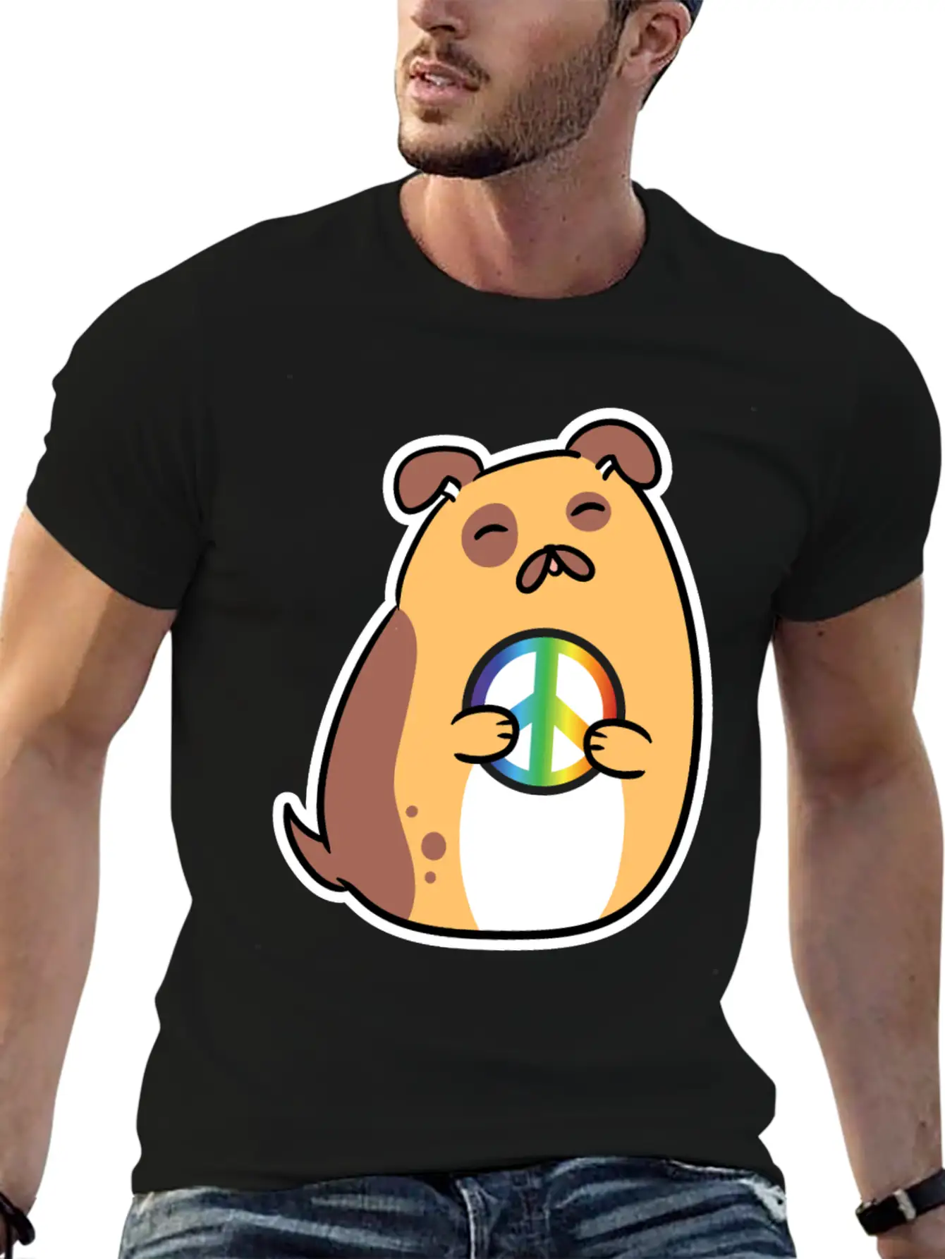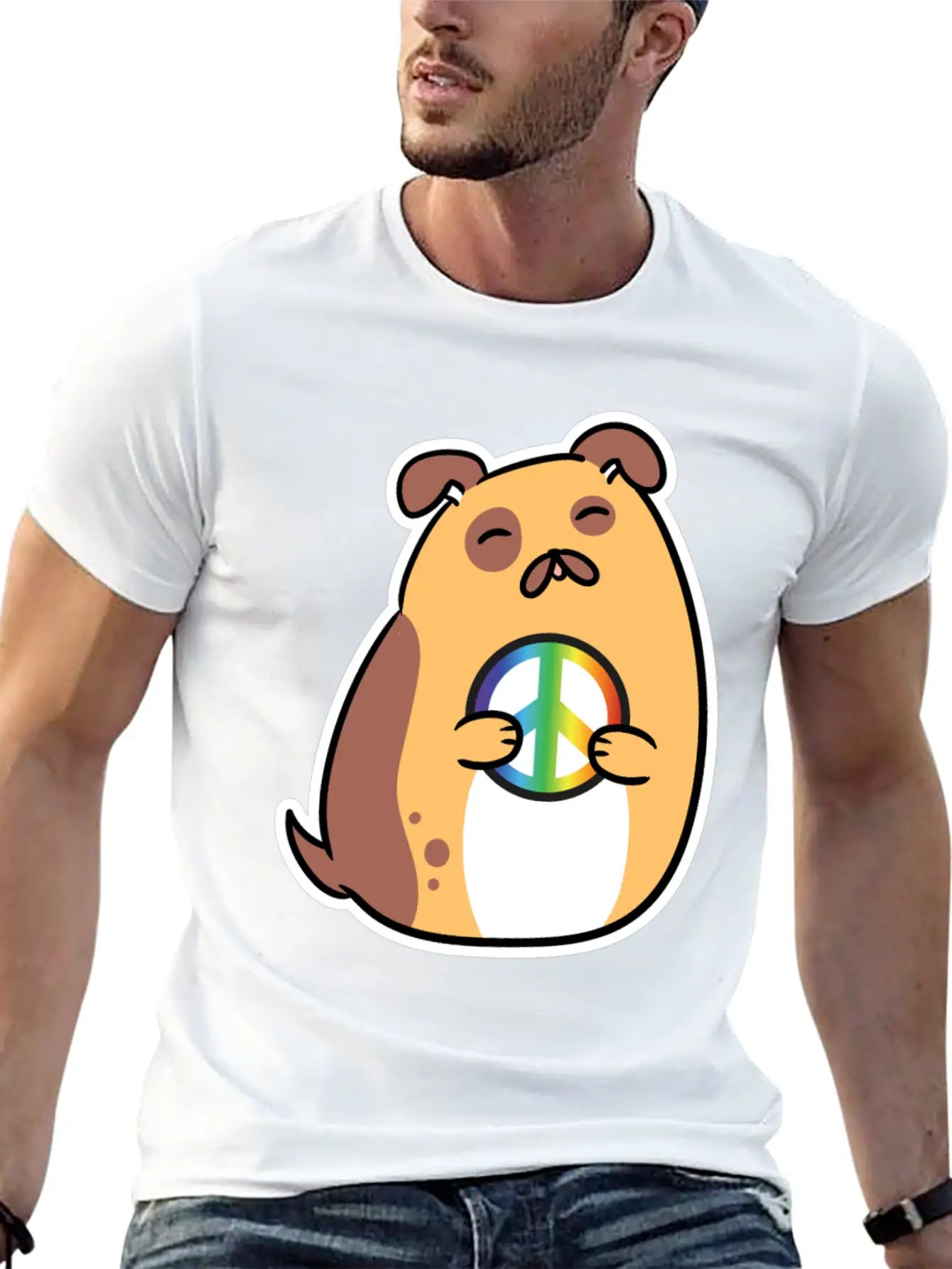 This T-shirt features a clean and artistic depiction of the Peace sign, freedom, cute dog, perfect for everyday casual wear. Soft, breathable cotton.