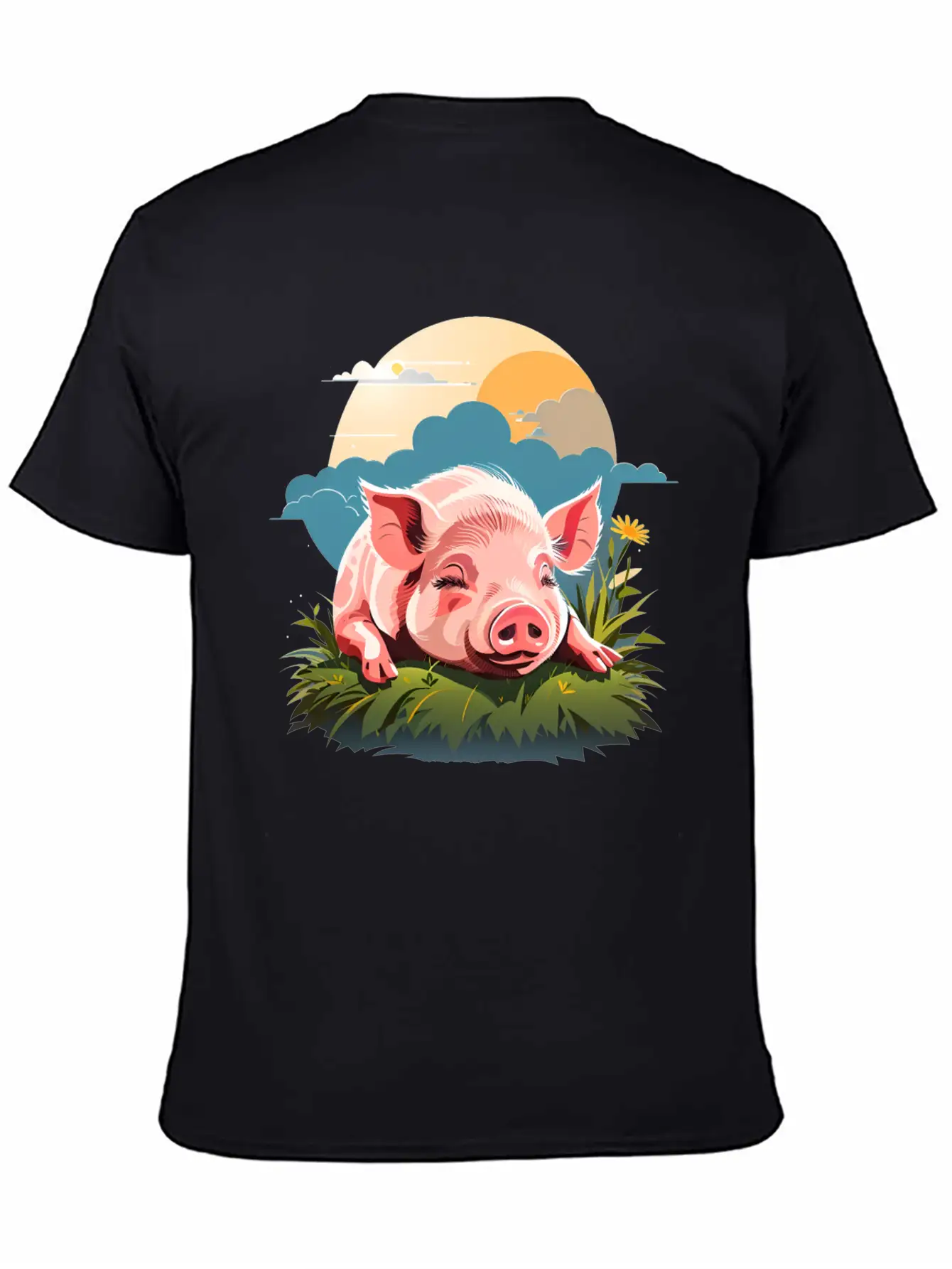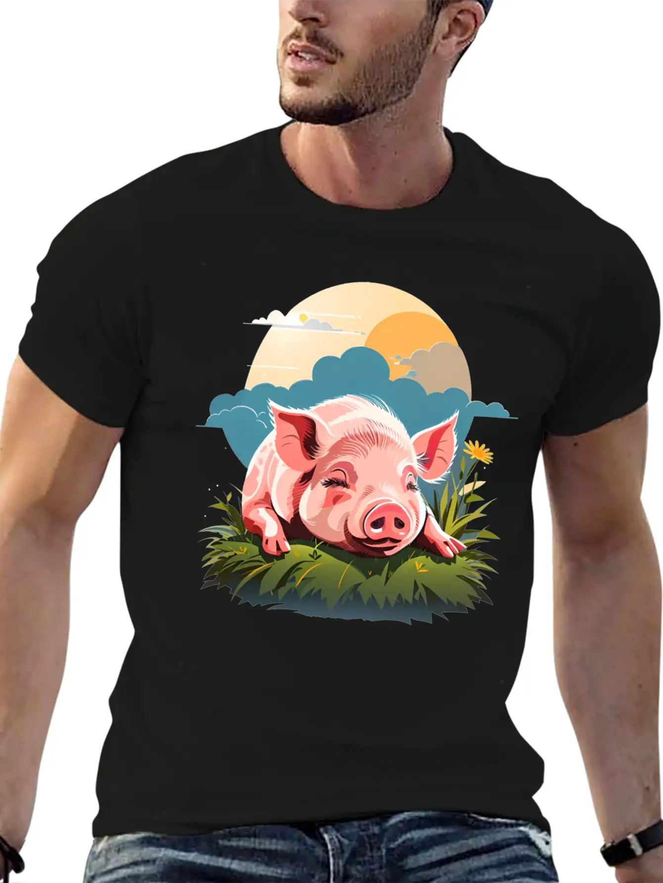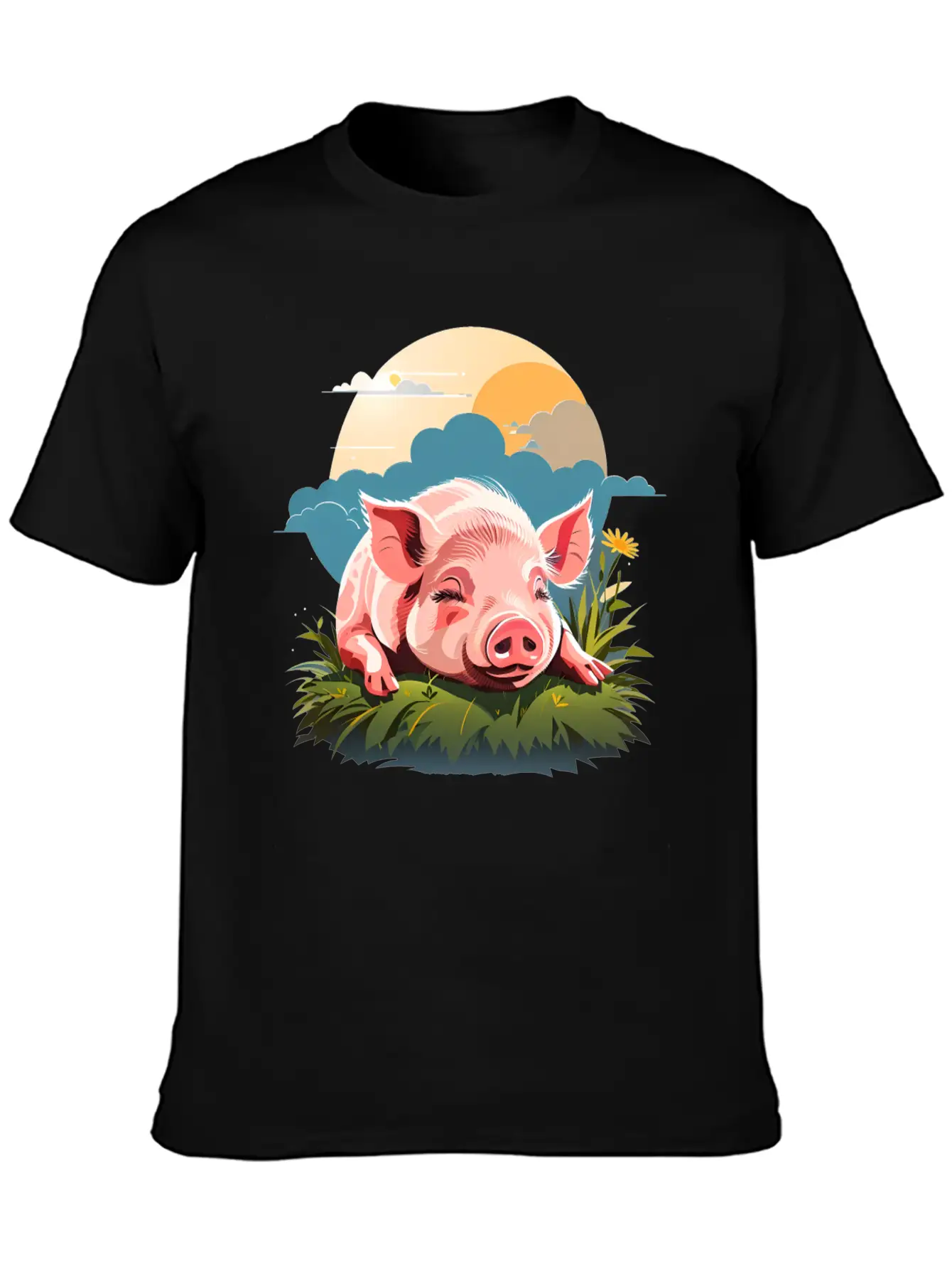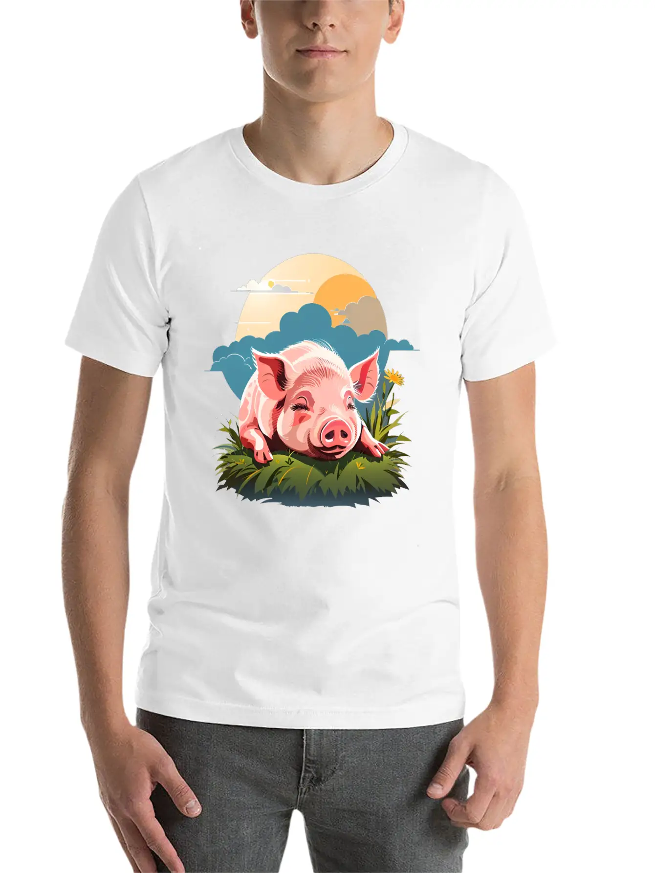 Pig Sleeping On Grass Unisex Casual T-Shirt – Clean Design For Daily Comfort