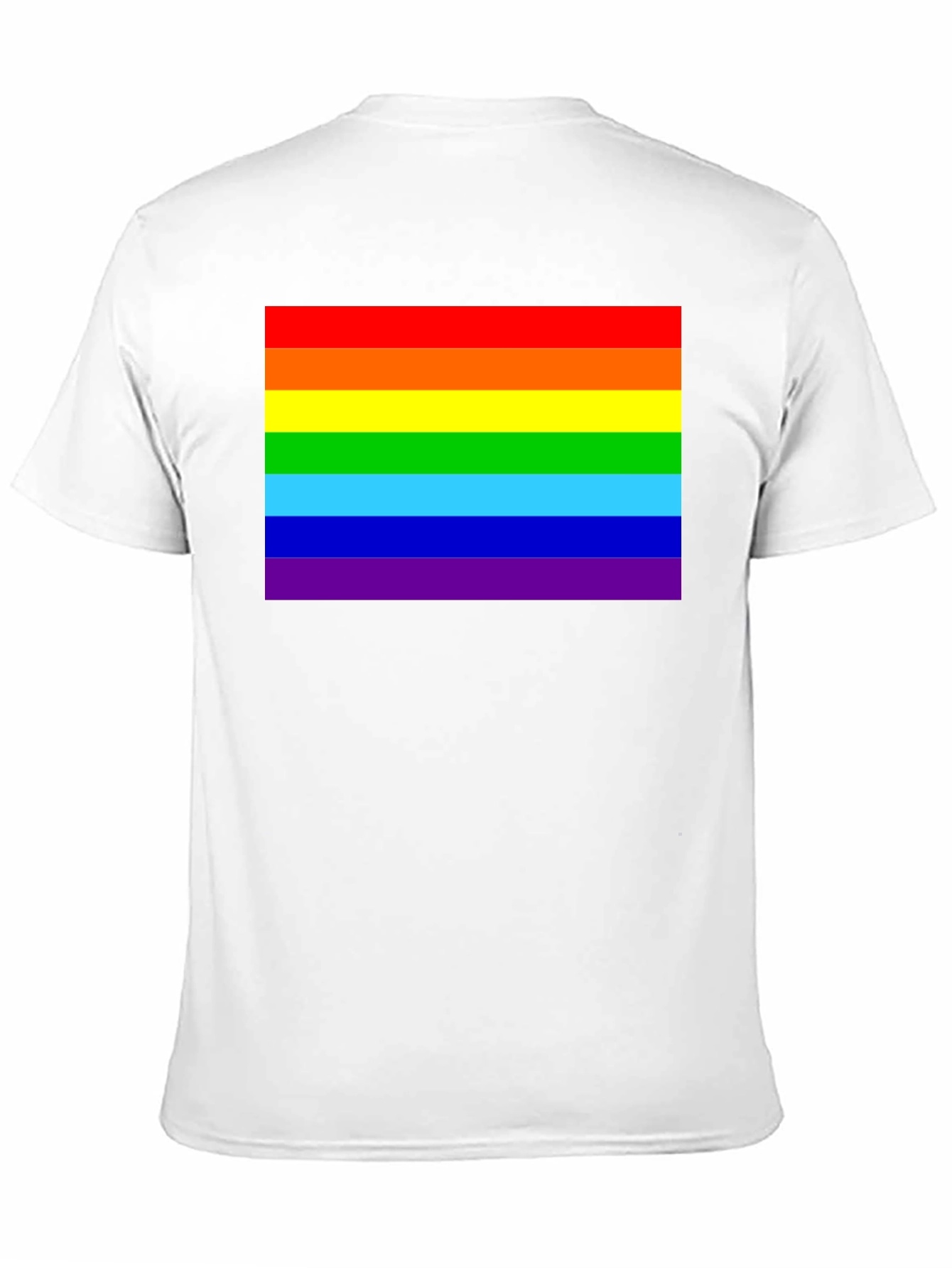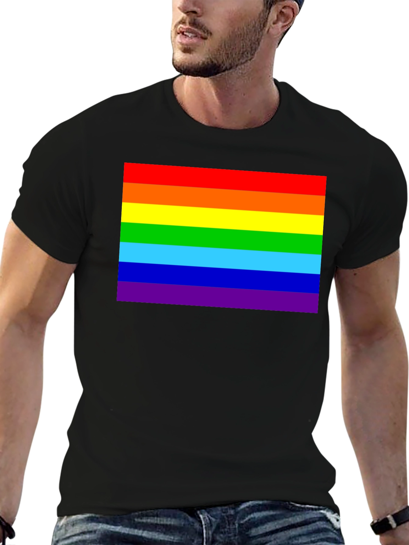 Show your support and pride with this vibrant rainbow flag t-shirt. This classic black tee features a bold, colorful LGBTQ+ pride flag design on the chest. Made from comfortable material, it's perfect for everyday wear, pride parades, rallies, or simply expressing your identity. The eye-catching rainbow graphic makes a statement of inclusivity and solidarity. It's a versatile piece that pairs well with jeans, shorts, or casual wear. A must-have for anyone wanting to showcase their support for the LGBTQ+ community with style. This tee is sure to become a favorite in your wardrobe.