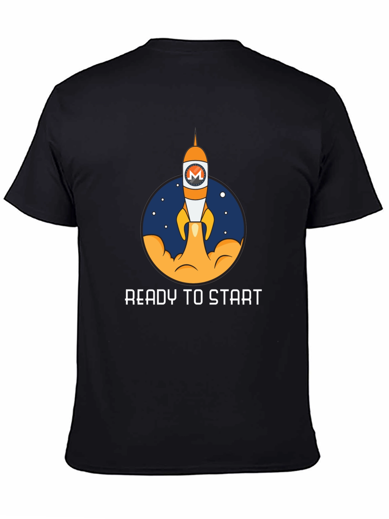 Blast off in style with this eye-catching black t-shirt! Featuring a vibrant graphic of a rocket ship against a starry backdrop, emblazoned with a distinctive logo. The design is complemented by the empowering message "Ready To Start." Crafted from a comfortable-looking fabric, this tee is perfect for casual wear, expressing your adventurous spirit, or making a statement. Whether you're an entrepreneur, a dreamer, or simply love unique designs, this t-shirt is a must-have addition to your wardrobe. Pair it with jeans, shorts, or even dress it up with a blazer – the possibilities are endless. Get ready to launch your day in style!