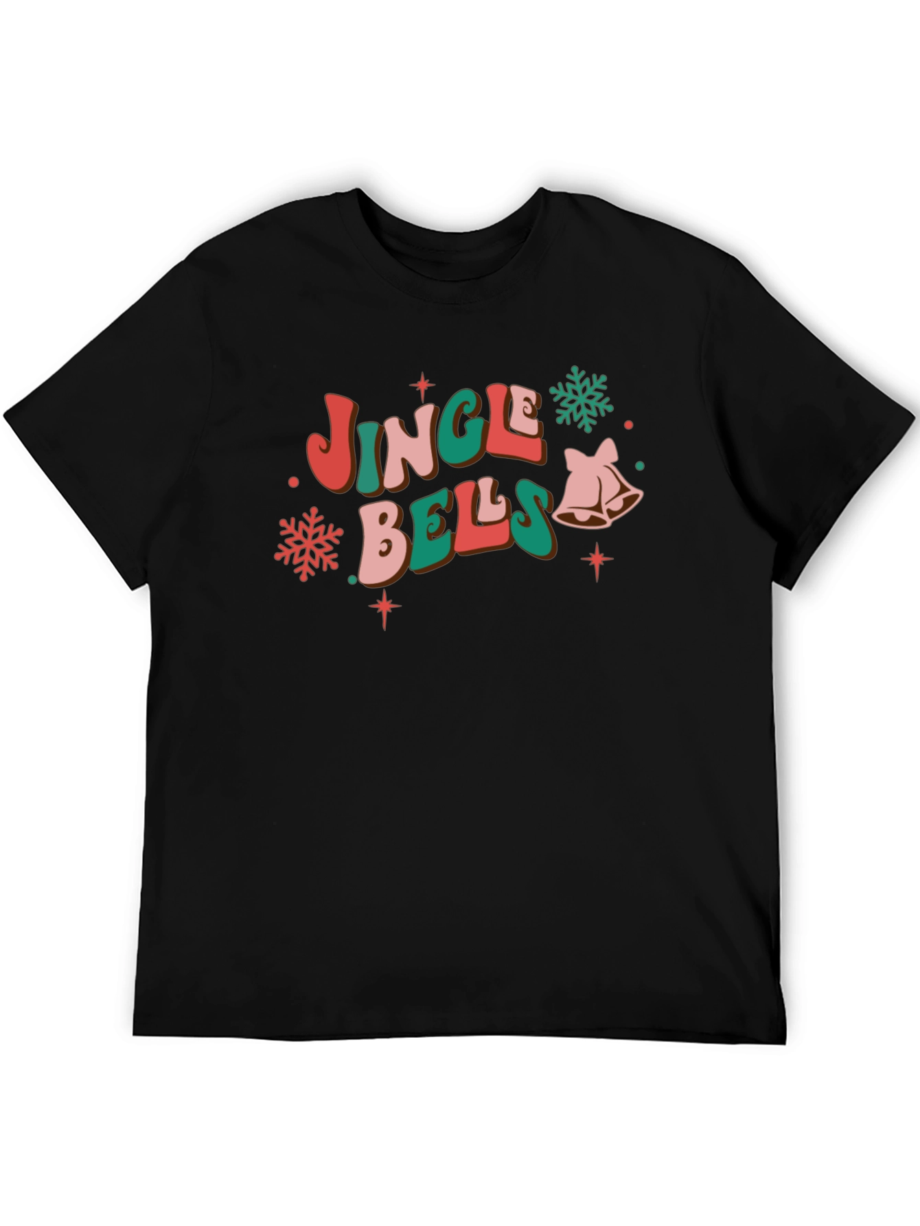Spread holiday cheer with this retro-inspired "Jingle Bells" graphic tee. This black t-shirt features a vintage-style design with the words "Jingle Bells" in a playful, colorful font, complete with snowflakes and bells. The design combines festive red, green, and pink hues. The t-shirt has a classic fit and short sleeves, ideal for casual wear during the Christmas season. Made from comfortable, breathable fabric, this tee is perfect for holiday parties, family gatherings, or everyday festive fun. Show off your holiday spirit with this stylish and unique t-shirt!