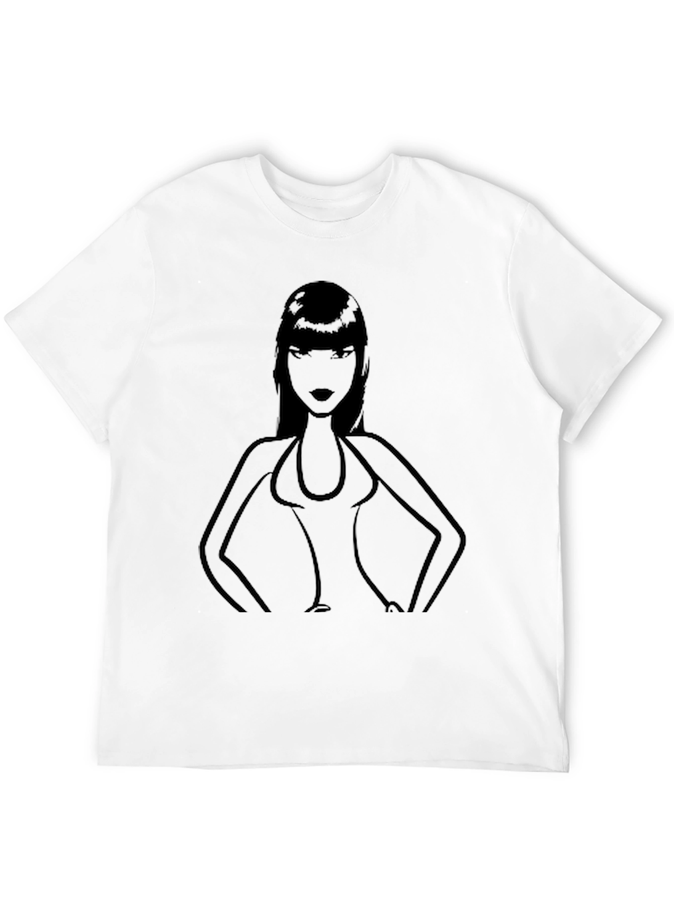 This black t-shirt features a striking silhouette of a woman. The clean lines of the graphic create a minimalist, modern look. Made from a soft, comfortable fabric, this tee is perfect for everyday wear. The solid black color makes it versatile and easy to pair with any outfit. Dress it up with a blazer or keep it casual with jeans. A unique and stylish addition to your wardrobe.