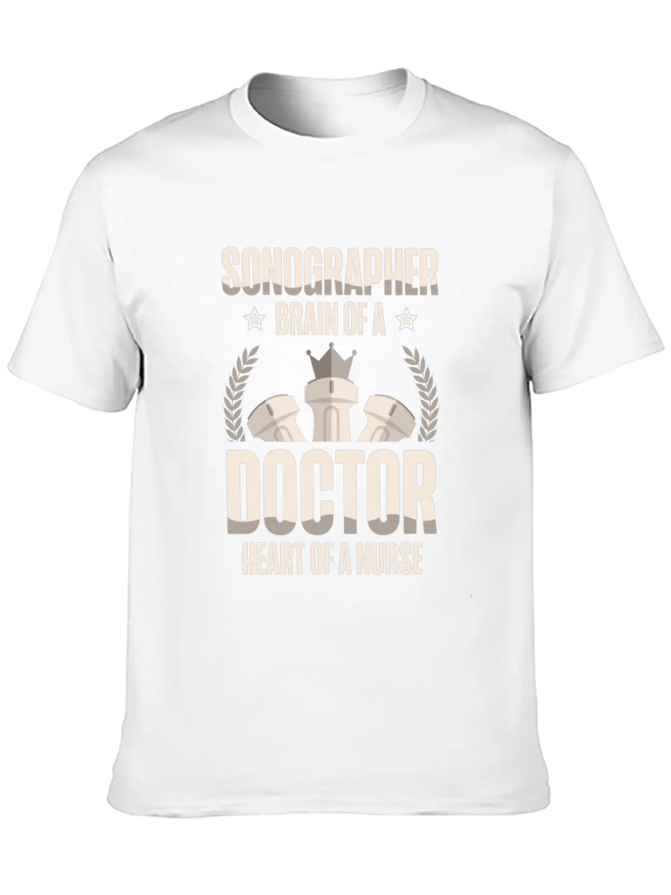 This T-shirt features a clean and artistic depiction of the Sonographer Brain Of A Doctor Heart Of A Nurse, perfect for everyday casual wear. Soft, breathable cotton.