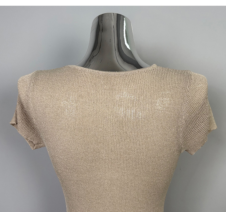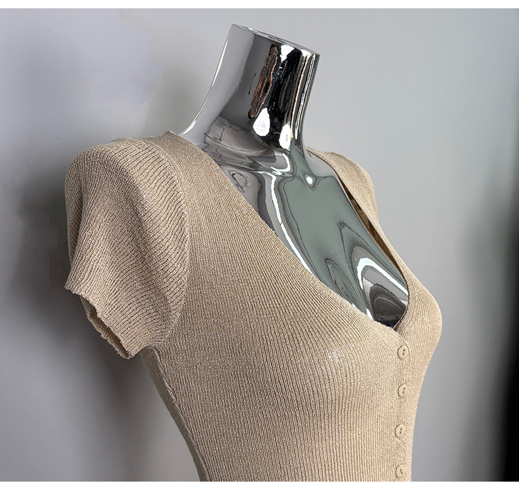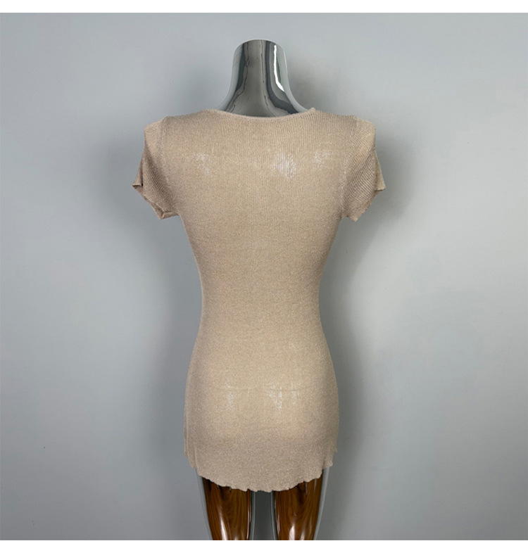 V-Neck Short Single-Breasted Button Short Sleeve Knitted Dress