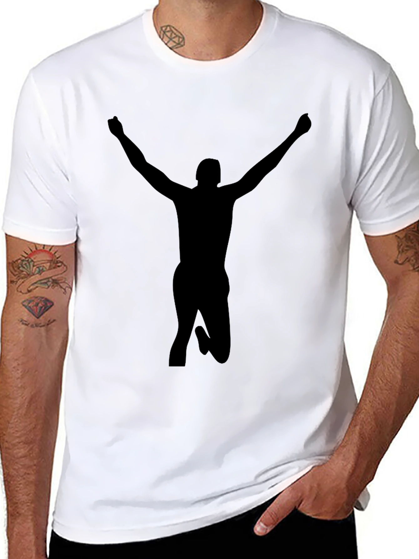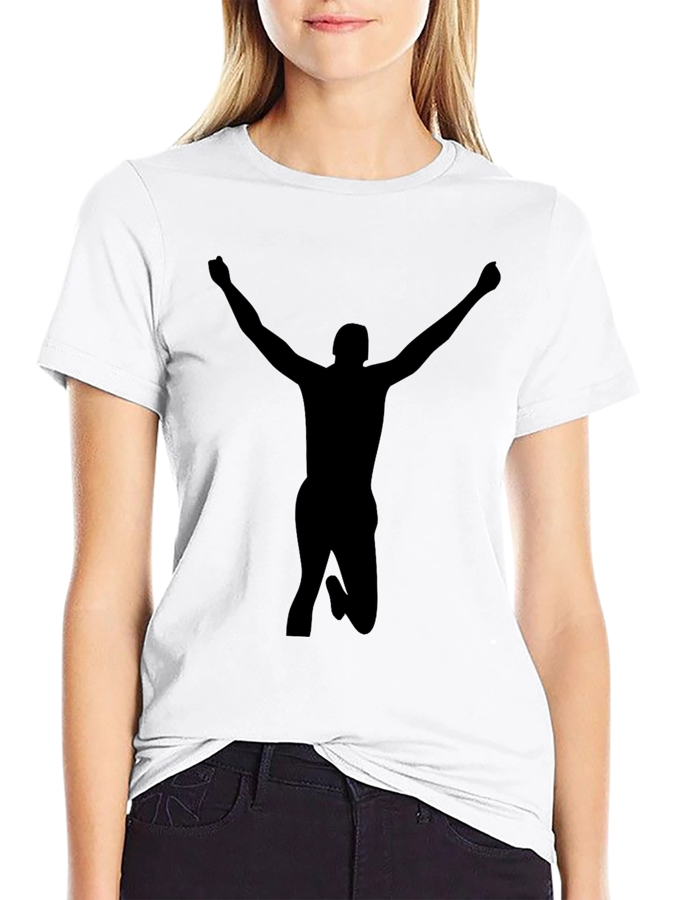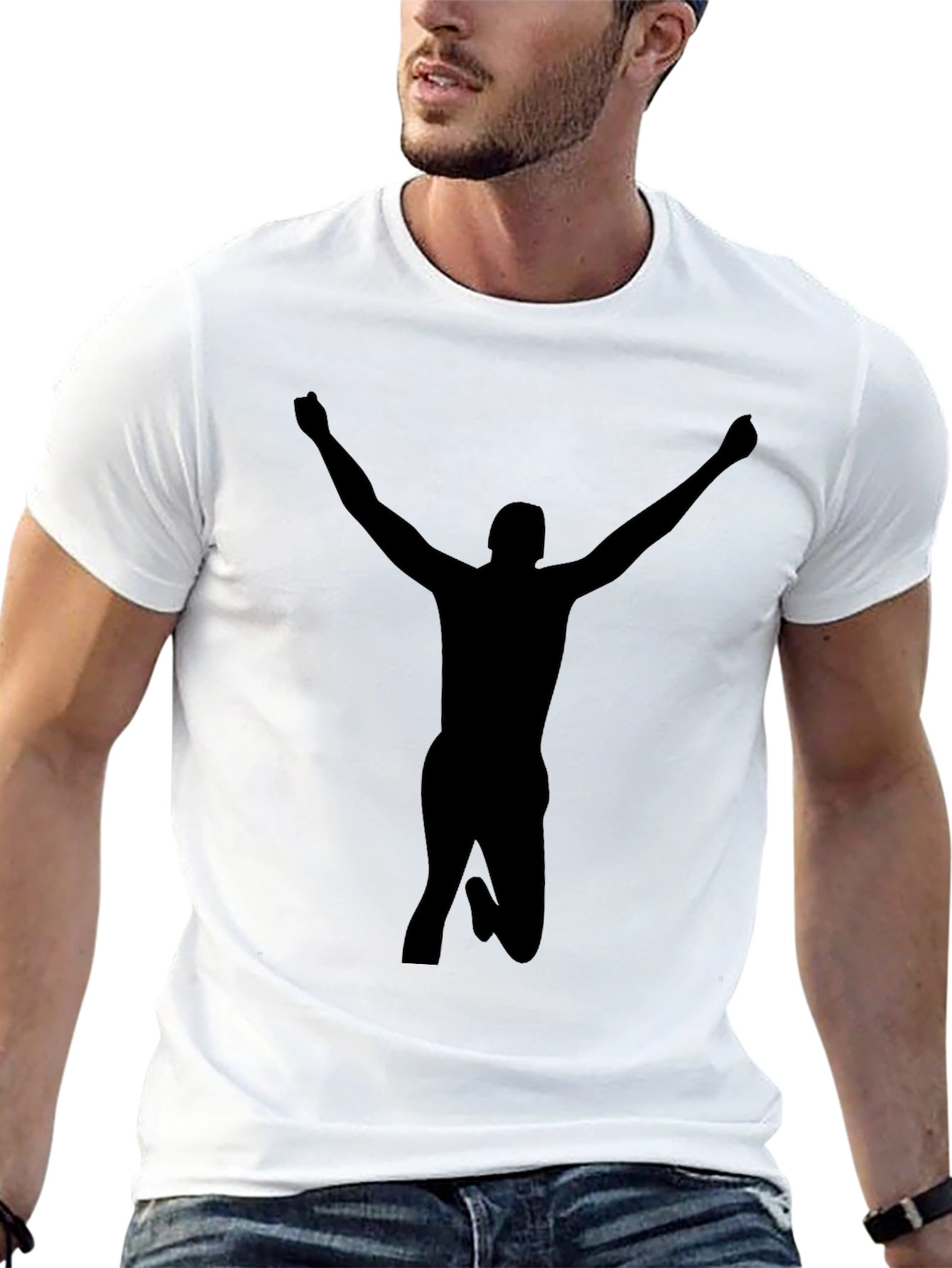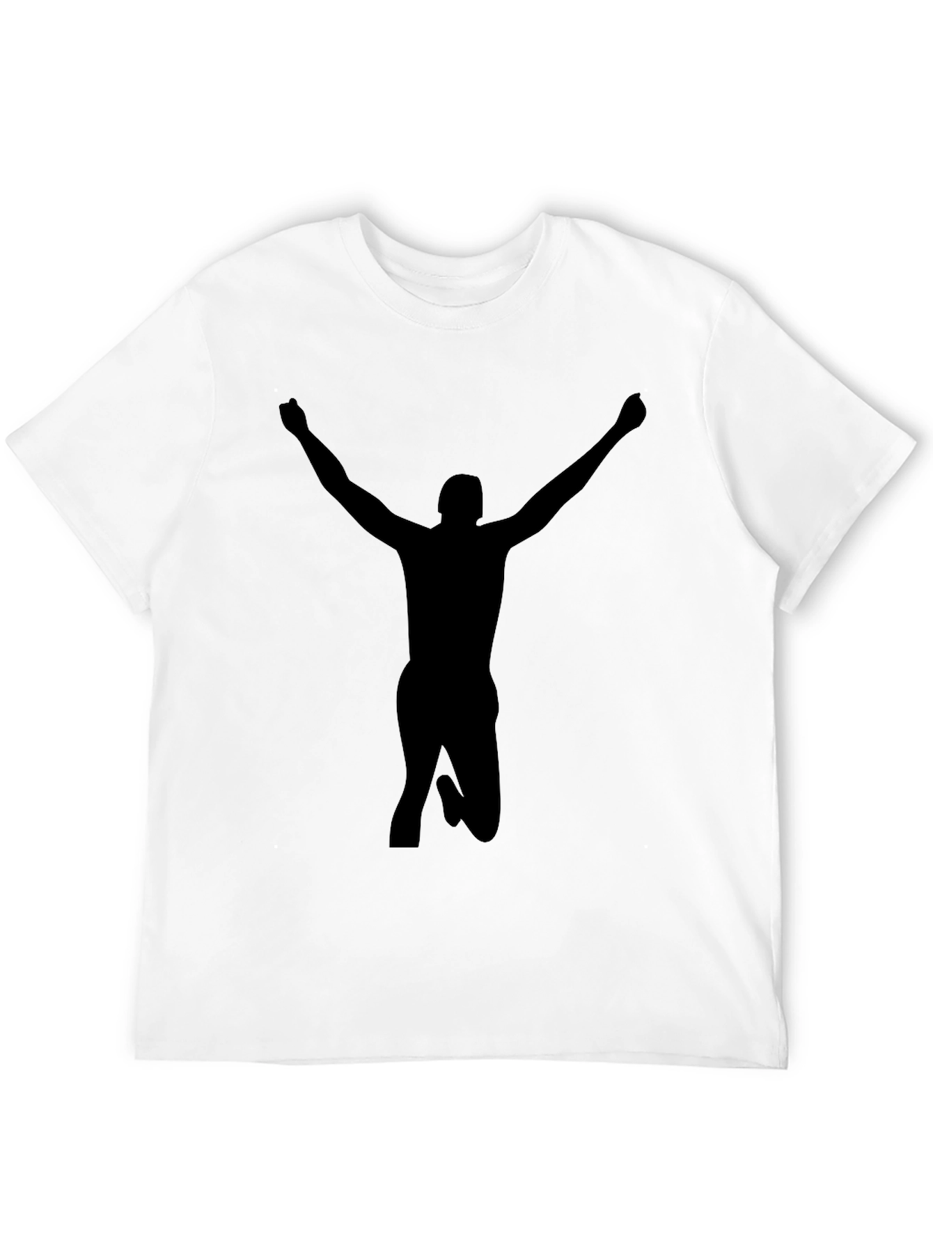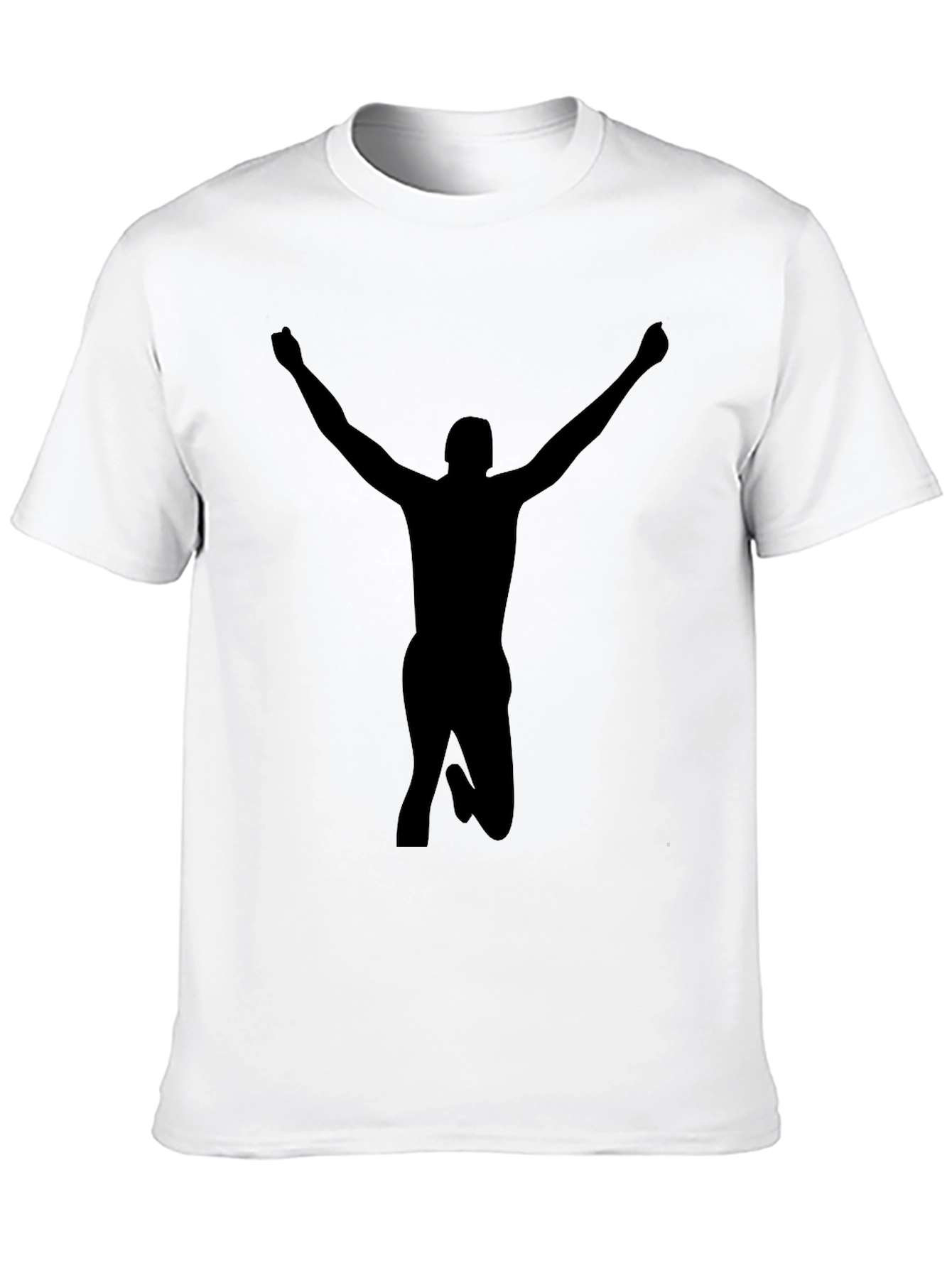 Showcase your winning spirit with this striking black t-shirt. Featuring a bold silhouette of a figure in a victorious pose, this tee makes a statement. Crafted from comfortable materials, it's perfect for everyday wear. The minimalist design allows for versatile styling, making it a great addition to any wardrobe. Wear it casually or dress it up, this t-shirt is sure to turn heads. Get yours today and celebrate your achievements!