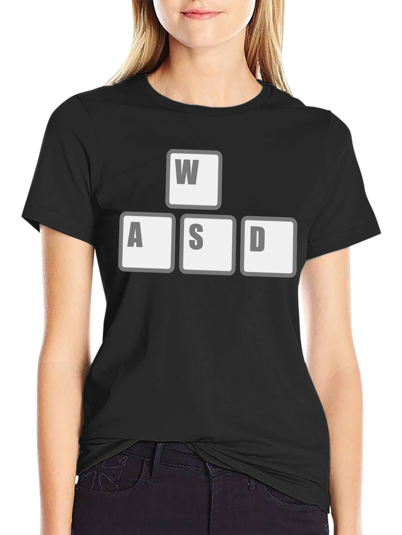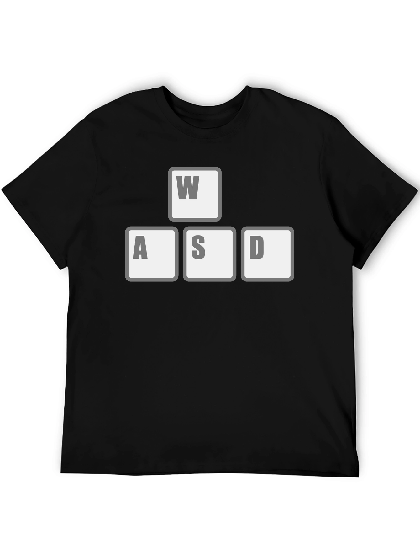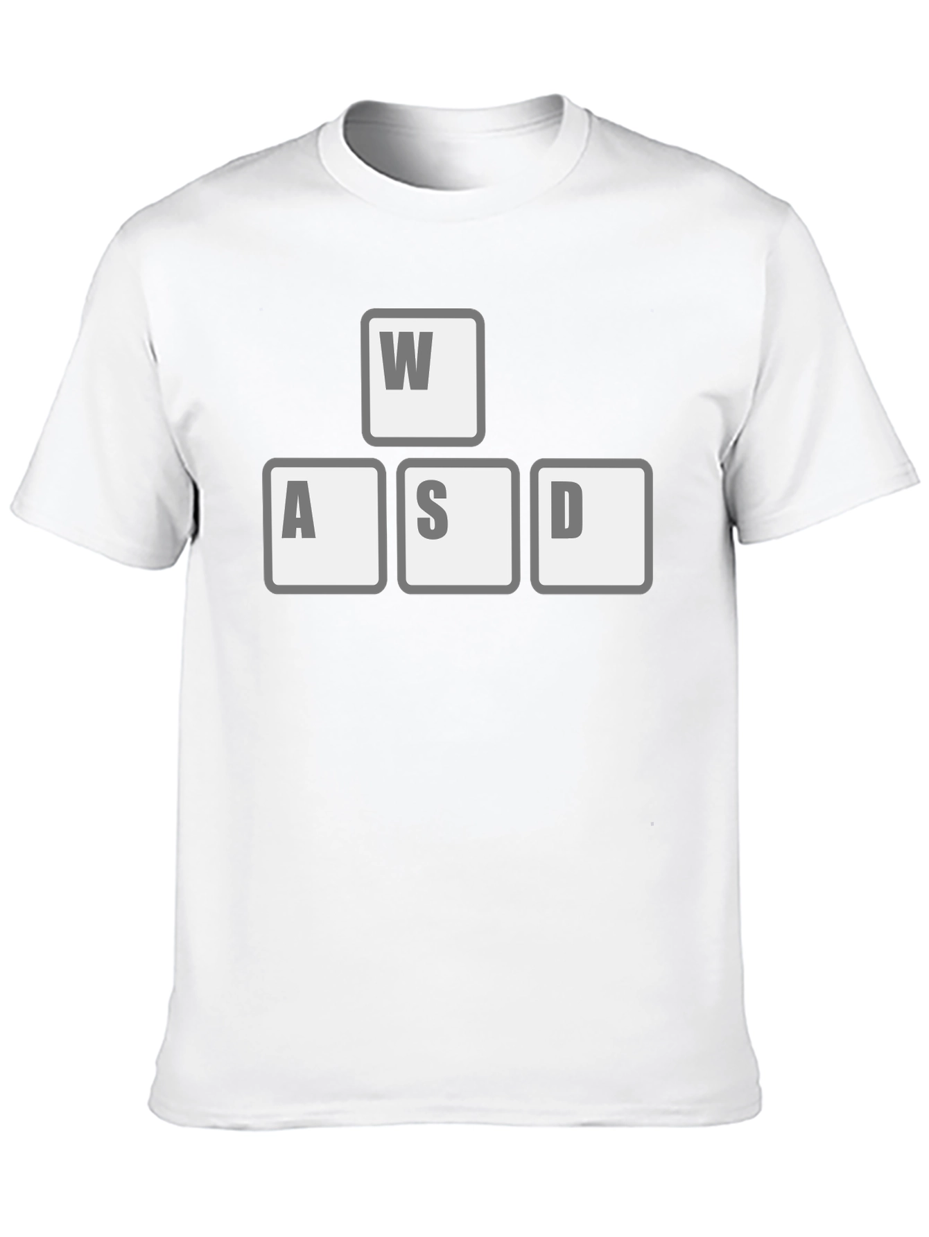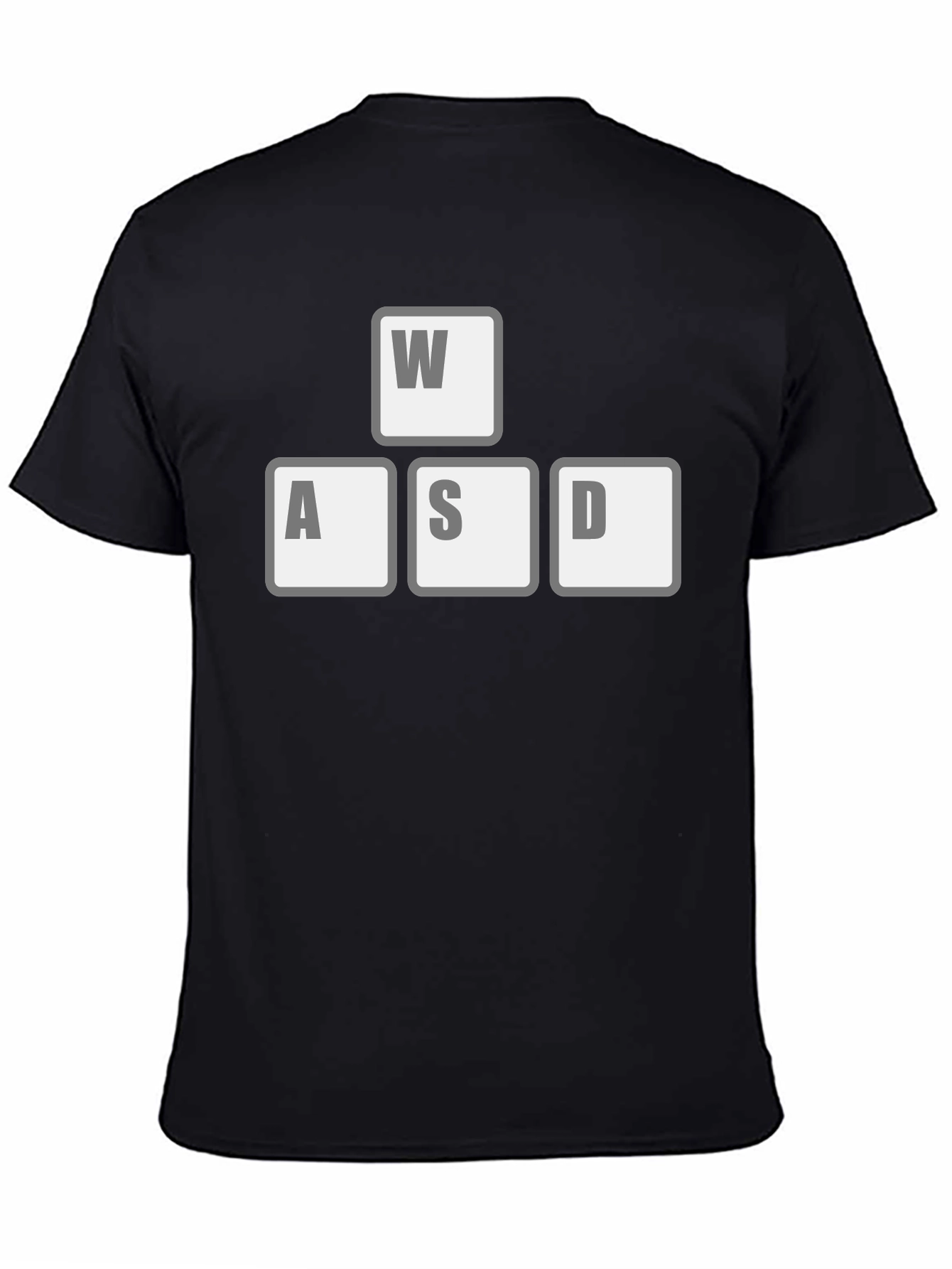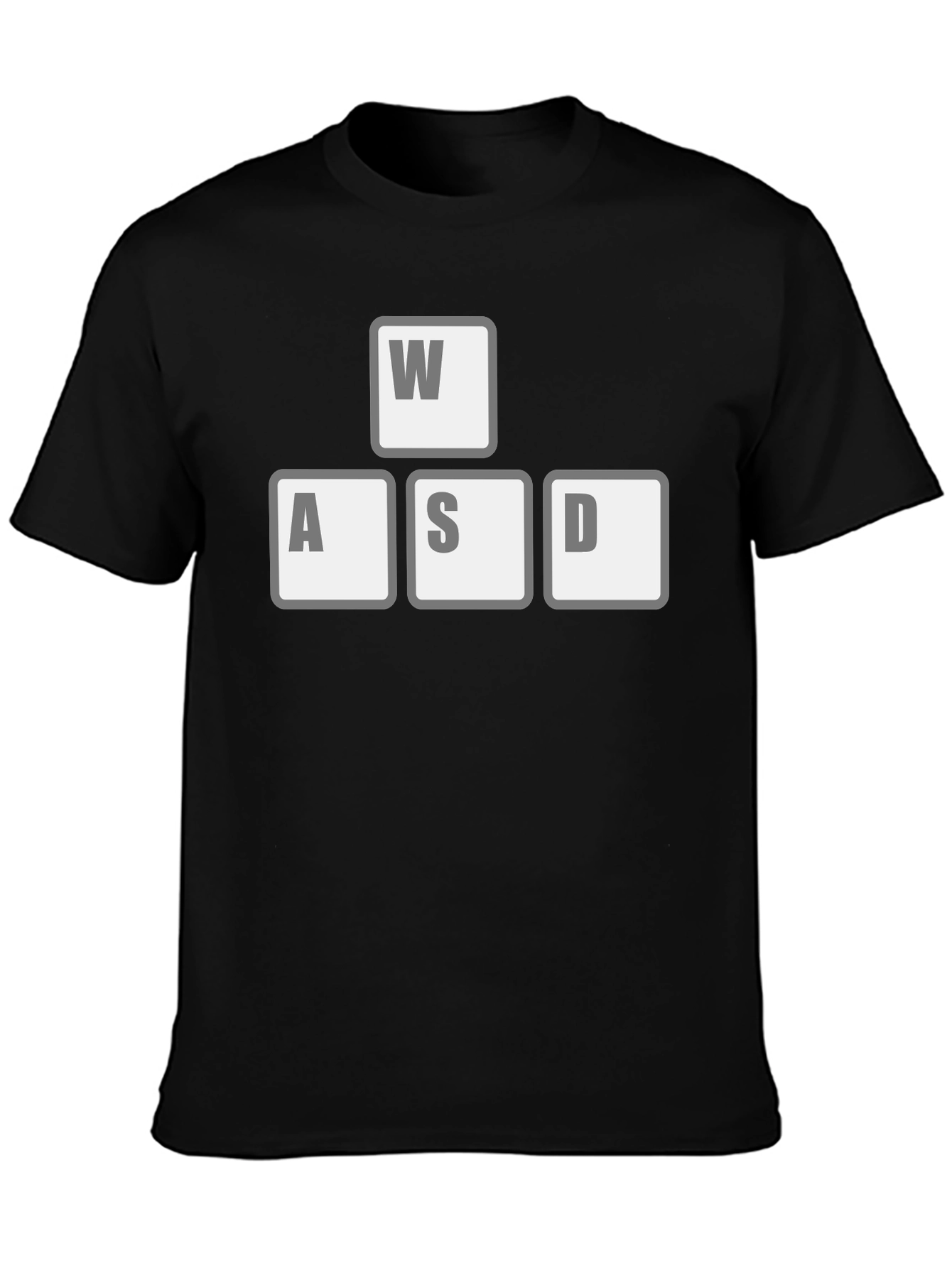 Level up your style with this unique black t-shirt featuring the iconic WASD keys! Perfect for gamers, this tee showcases a bold, minimalist design with "W", "A", "S", and "D" arranged in a classic gaming layout. The shirt appears to be crafted from a comfortable, breathable fabric, making it ideal for long gaming sessions or everyday wear. Express your passion for gaming with this eye-catching and stylish tee, a great conversation starter and a must-have addition to any gamer's wardrobe. Get yours today and let everyone know you're ready to play!