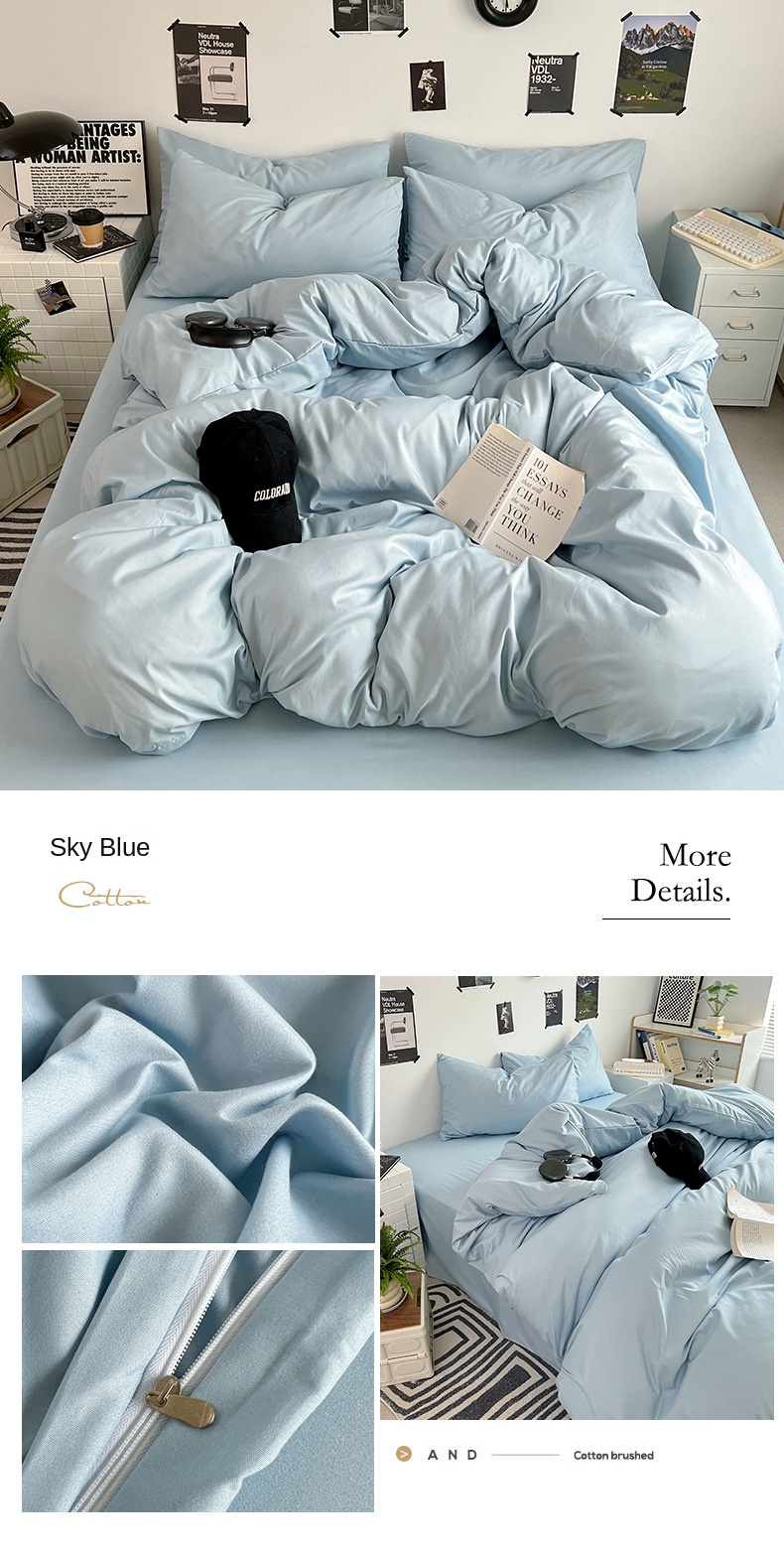 Washed Cotton Solid Color Double Spliced Four-Piece Bedding Set - Sheet, Quilt Cover, Pillowcases for Employee and Dormitory Use